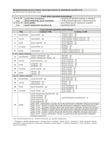 HARMONOGRAM EGZAMINU MATURALNEGO W TERM ! "#$%&'!()