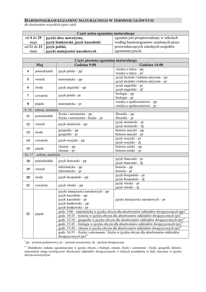 pp – poziom podstawowy; pr – poziom rozszerzony.