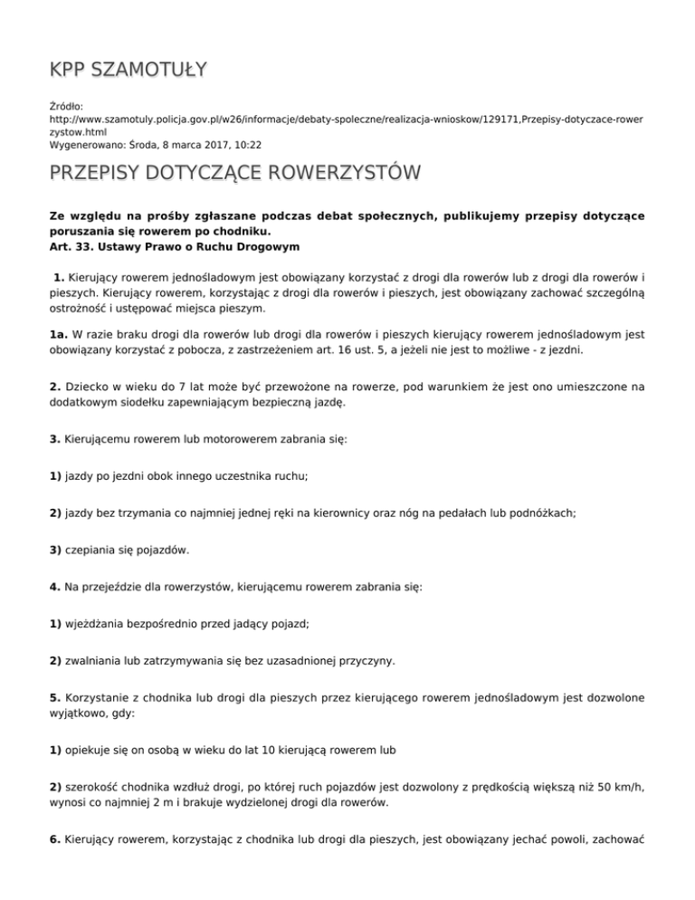 KPP SZAMOTUŁY PRZEPISY DOTYCZĄCE ROWERZYSTÓW