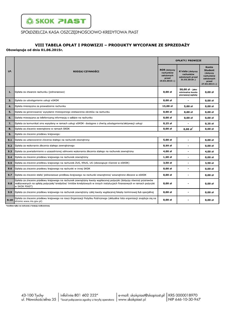 ROR (dotyczy LP. przed 19.03.2010 r.) A'vista (dotyczy 31.03.2015r.) 1. minimalna kwota 3. - 4. 5. 6. 7. - 8. * 9. 9.1 - 9.2 - 9.3 - 9.4 - 9.5 - 9.6 - 9.7 - 9.8 w SKOK PIAST) 9.9 9.10 - stronie www.ms.gov.pl) - Konto Student (dotyczy przed 27.03.2014 r.)