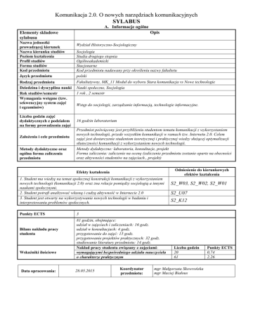Komunikacja 2.0. O nowych narzędziach komunikacyjnych SYLABUS