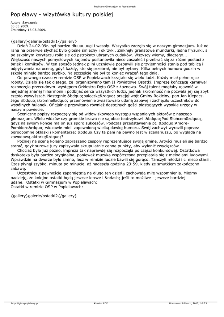roboty. Działo się tak dlatego, że organizowano tam II Powiatowe Ostatki. Imprezę kończącą karnawał