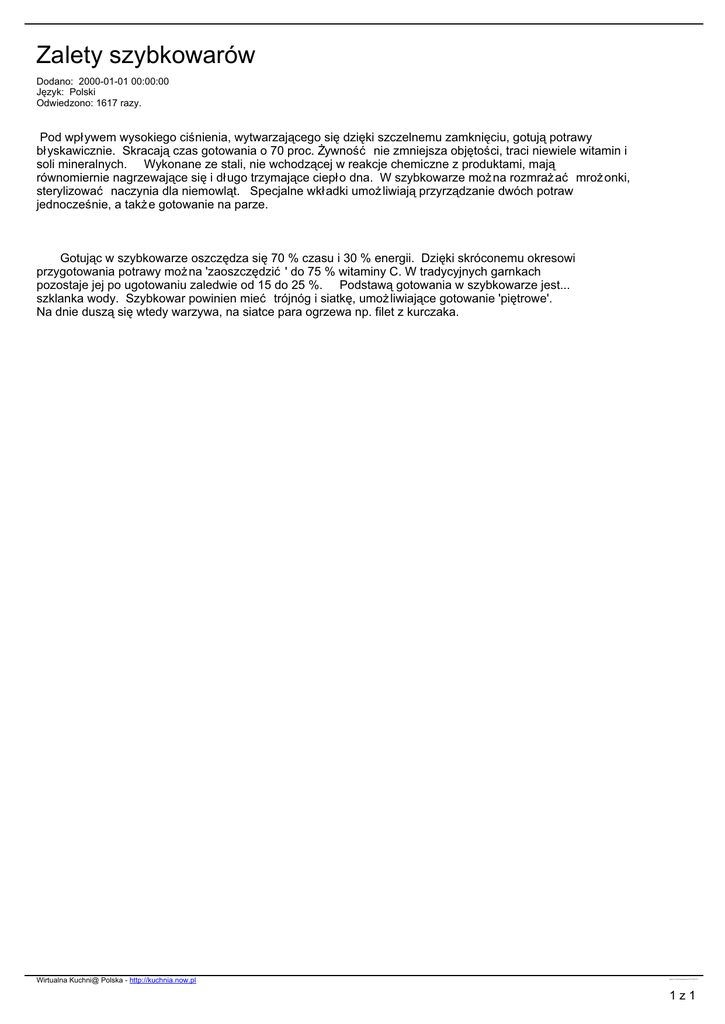 Zalety szybkowarów - Wirtualna Kuchnia Polska