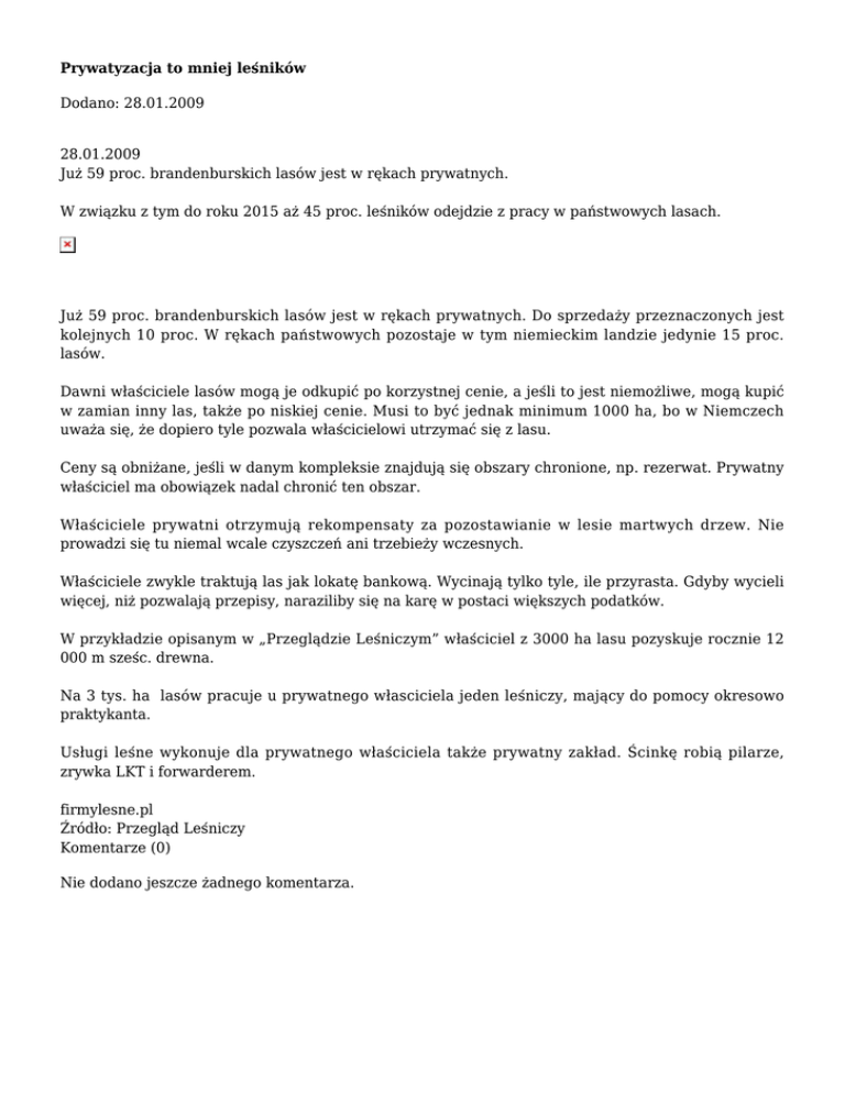 Firmy Leśne - Prywatyzacja to mniej leśników