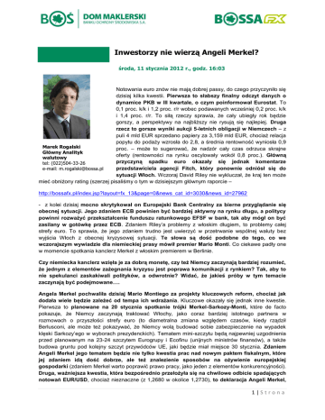 Inwestorzy nie wierzą Angeli Merkel?