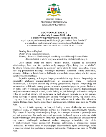 Słowo Ks. Arcybiskupa na Wielki Post 2011