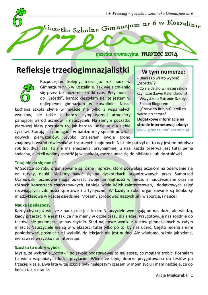 Gazetka - Gimnazjum nr 6 w Koszalinie