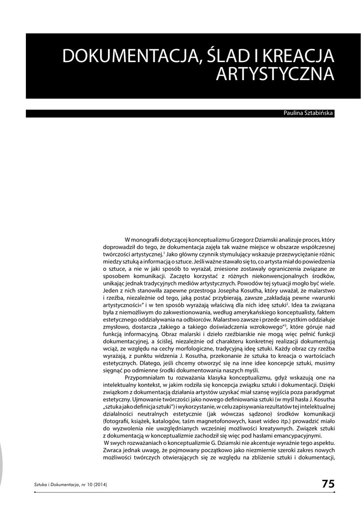 DOKUMentacJa, ślaD I KreacJa artystycZna