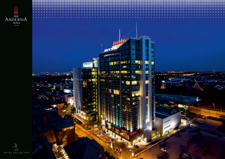 19min Ławica Airport LOKALIZACJA MIEJSCE POKOJE 7,6 km IBB ANDERSIA HOTEL **** Plac Andersa 3, 61-894 Poznań Tel. +48 61 66 78 1000 e-mail: [email protected] www.andersiahotel.pl WYPOSAŻENIE RESTAURACJA LOBBY BAR OFERTA KONFERENCJE SPA&WELLNESS KONTAKT 14min Stary Rynek 5min Lokalizacja w samym centrum: - 10 min. pieszo do MTP - 10 min. pieszo do Starego Rynku - 10 min. pieszo do dworca PKP i Poznań City Center - naprzeciwko Centrum Handlu, Sztuki i Biznesu Stary Browar - 7 km do lotniska Ławica - w pobliżu węzła komunikacyjnego autostrady A2 Komorniki 4min 9min 21min International Fair 1,6 km 8min 18min Railway station 1,5 km 1,4 km LOKALIZACJA MIEJSCE POKOJE WYPOSAŻENIE RESTAURACJA Luksusowy IBB Andersia Hotel to miejsce stworzone dla osób o wysokich wymaganiach i wyrafinowanym guście. Starannie dobrany wystrój hotelu zapewnia przyjemną atmosferę sprzyjając wypoczynkowi i pracy. LOBBY BAR OFERTA KONFERENCJE SPA&WELLNESS KONTAKT Hotel, w którym każdy Gość czuje się swobodnie, a Jego obecność jest dla nas wydarzeniem. Pobyt w tym niezwykłym miejscu inspiruje i zachęca do powrotu przy każdej kolejnej okazji. LOKALIZACJA MIEJSCE POKOJE WYPOSAŻENIE RESTAURACJA LOBBY BAR OFERTA KONFERENCJE SPA&WELLNESS KONTAKT Hotel Andersia oferuje komfortowy wypoczynek w 171 eleganckich pokojach i apartamentach o zróżnicowanym standardzie: - Comfort - Smart Room - Business Room - Junior Suite - Executive Business - Executive Room - Senior Suite Wśród nich pokoje rodzinne, pokoje dla palących i niepalących, pokoje przystosowane do potrzeb osób niepełnosprawnych. Rezerwacja pokoi: tel. 61 667 8100, -110 e-mail: [email protected] e-mail: [email protected] http://www.andersiahotel.pl/rezerwacja LOKALIZACJA MIEJSCE POKOJE WYPOSAŻENIE RESTAURACJA LOBBY BAR OFERTA KONFERENCJE SPA&WELLNESS KONTAKT - Przestronne pokoje o powierzchni od 26 do 100 m2 - Łóżko typu King, Queen lub Twin - Biurko do pracy - Łazienka z prysznicem lub wanną oraz ogrzewaniem podłogowym - Suszarka do włosów - Zestaw kosmetyków - Klimatyzacja sterowana indywidualnie - Sejf na przenośny komputer - Żelazko i deska do prasowania - Bezpłatny internet 100 MB - Telewizor LCD - Bezpłatny, bezalkoholowy minibar - Zestaw do kawy i herbaty - Możliwość wypożyczenia roweru Rezerwacja pokoi: tel. 61 667 8100, -110 e-mail: [email protected] e-mail: [email protected] http://www.andersiahotel.pl/rezerwacja LOKALIZACJA MIEJSCE POKOJE WYPOSAŻENIE RESTAURACJA LOBBY BAR OFERTA KONFERENCJE SPA&WELLNESS KONTAKT Restauracja Flavoria serwuje wyśmienite dania przygotowane przez Harmoniakuchni SPA zajmuje większość mistrzów Hotelu Andersia. powierzchni drugiego piętra hotelu. Eleganckie wnętrza z widokiem na Stary i wykwintne StrefaBrowar Wellness obejmuje:menu restauracji zadowolą - basen z wyjściem nakażdego taras, miłośnika dobrej kuchni. - jacuzzi, - suchą saunę fińską, - łaźnię parową, Godziny otwarcia: 13:00 - 22:00 - solarium, Wszystkie pozycje z menu Restauracji Flavoria i karty Lobby Baru są dostępne w ramach usługi room service do 2:00 w nocy. Restauracja świadczy usługi cateringowe w całym Poznaniu i jego okolicach. Restauracja Flavoria tel. +48 61 667 80 81 Pobierz menu: http://www.andersiahotel.pl/uploads/ Flavoria_menu.pdf LOKALIZACJA MIEJSCE Na parterze Hotelu IBB Andersia znajduje się Lobby Bar z obszernym menu. POKOJE WYPOSAŻENIE RESTAURACJA LOBBY BAR OFERTA KONFERENCJE Godziny otwarcia: 11:00 do ostatniego klienta Do godziny 1:30 w Lobby Barze zamówić można wyśmienite dania z menu hotelowej Restauracji Flavoria. Wszystkie pozycje z karty Lobby Baru są również dostępne w ramach usługi room service. SPA&WELLNESS KONTAKT Lobby Bar: tel. +48 61 667 80 82 LOKALIZACJA MIEJSCE POKOJE WYPOSAŻENIE RESTAURACJA LOBBY BAR OFERTA KONFERENCJE SPA&WELLNESS Hotel IBB Andersia to idealne miejsce zarówno na wystawny bankiet jak i kameralne przyjęcie. Eleganckie wnętrza, profesjonalna obsługa i indywidualne menu stanowią gwarancję udanych spotkań. Hotel IBB Andersia oferuje: - konferencje, bankiety, szkolenia, spotkania biznesowe, seminaria - imprezy okolicznościowe, wesela, komunie, chrzciny, jubileusze, kameralne obiady - catering KONTAKT Dział Organizacji konferencji i imprez: tel. 61 667 8209, -212, -215, -217 e-mail: [email protected] e-mail: [email protected] http://www.andersiahotel.pl/konferencje/ sale-konferencyjne LOKALIZACJA MIEJSCE POKOJE WYPOSAŻENIE RESTAURACJA Sale konferencyjne: - A TENERYFA (maks. ilość osób 50) - B IBIZA (maks. ilość osób 56) - C MAJORKA (maks. ilość osób 37) - D MINORKA (maks. ilość osób 8) - A+B (maks. ilość osób 136) - B+C (maks. ilość osób 90) LOBBY BAR OFERTA - A+B+C (maks. ilość osób 160) - BOARDROOM KONFERENCJE SPA&WELLNESS KONTAKT Dział Organizacji konferencji i imprez: tel. 61 667 8209, -212, -215, -217 e-mail: [email protected] e-mail: [email protected] http://www.andersiahotel.pl/konferencje/ sale-konferencyjne LOKALIZACJA MIEJSCE POKOJE WYPOSAŻENIE RESTAURACJA Sale bankietowe: - E GIRONA (maks. ilość osób 103) - F WALENCJA (maks. ilość osób 99) - G MALAGA (maks. ilość osób 112) - H BARCELONA (maks. ilość osób 238) - E+F (maks. ilość osób 238) - E+F+G (maks. ilość osób 374) LOBBY BAR OFERTA KONFERENCJE - H+G (maks. ilość osób 300) - H+G+F (maks. ilość osób 354) - G+F (maks. ilość osób 169) - E+F+G+H (maks. ilość osób 650) SPA&WELLNESS KONTAKT Dział Organizacji konferencji i imprez: tel. 61 667 8209, -212, -215, -217 e-mail: [email protected] e-mail: [email protected] http://www.andersiahotel.pl/konferencje/ sale-konferencyjne LOKALIZACJA MIEJSCE POKOJE WYPOSAŻENIE RESTAURACJA LOBBY BAR OFERTA KONFERENCJE SPA&WELLNESS KONTAKT Harmonia SPA zajmuje większość powierzchni drugiego piętra hotelu. Strefa Wellness obejmuje: - basen z wyjściem na taras, - jacuzzi, - suchą saunę fińską, - łaźnię parową, - solarium, - strefę fitness. Salon SPA oferuje: - masaże - zabi