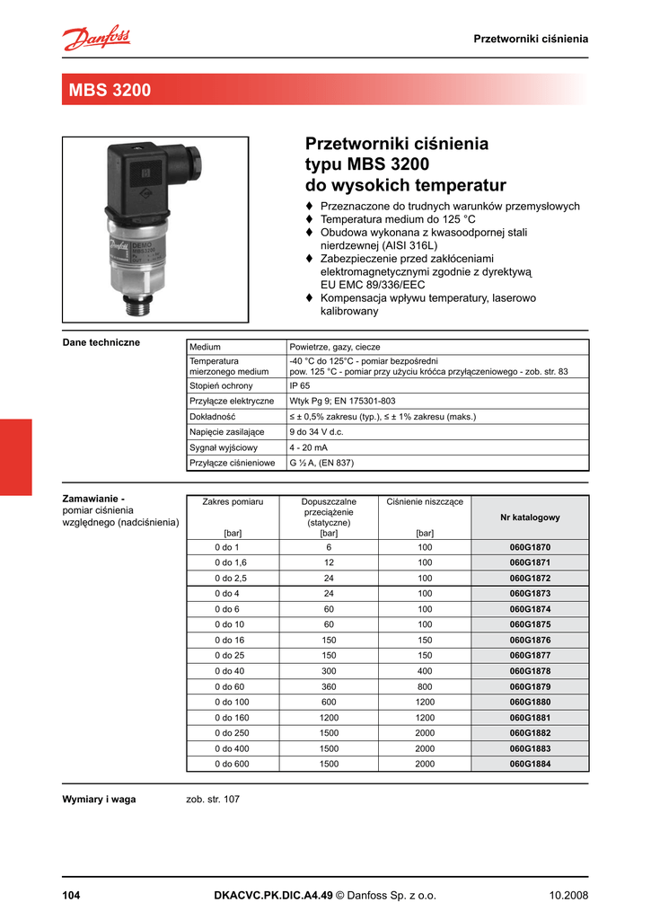 Przetworniki ciśnienia typu MBS 3200 do wysokich temperatur MBS