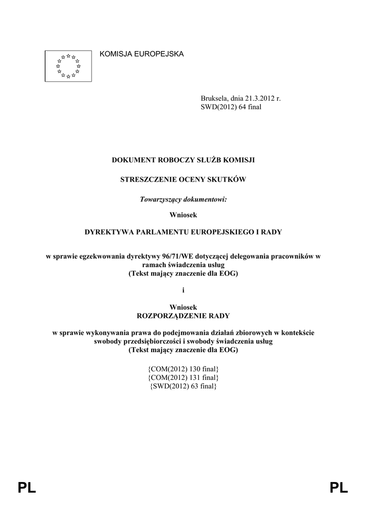 KOMISJA EUROPEJSKA Bruksela, dnia 21.3.2012 r. SWD(2012) 64