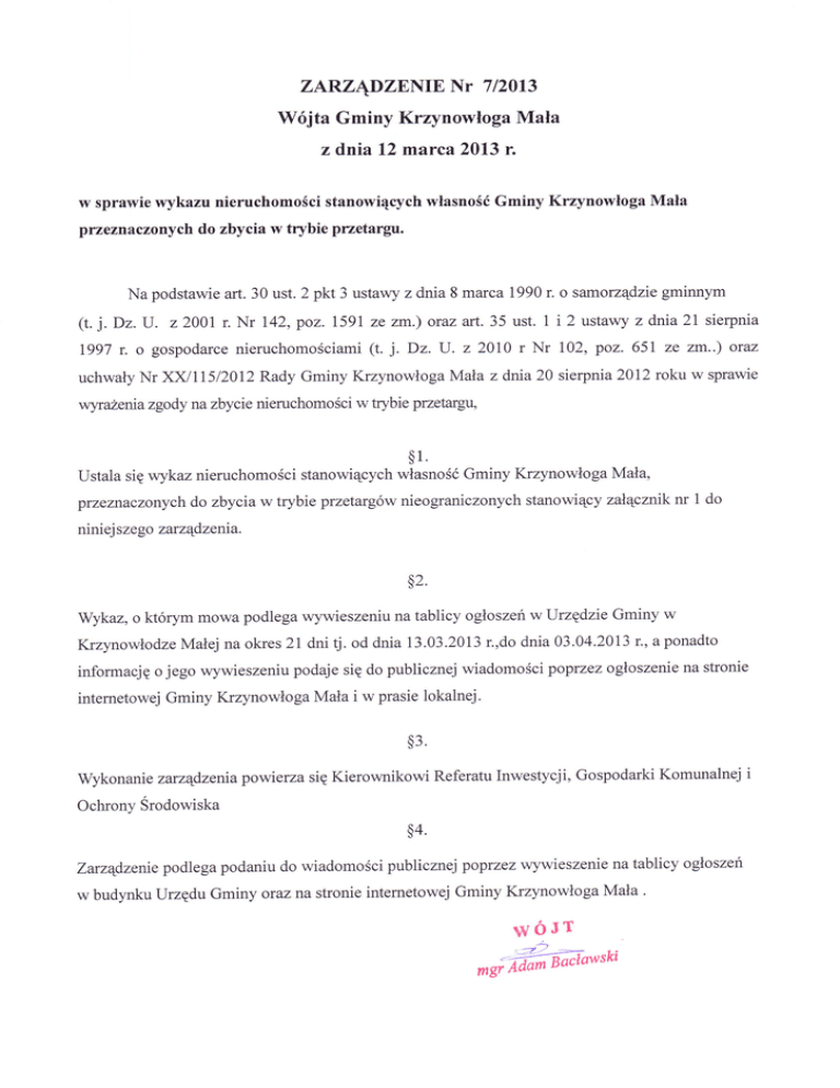 ZARZĄDZENIE Nr 7/20L3 - BIP