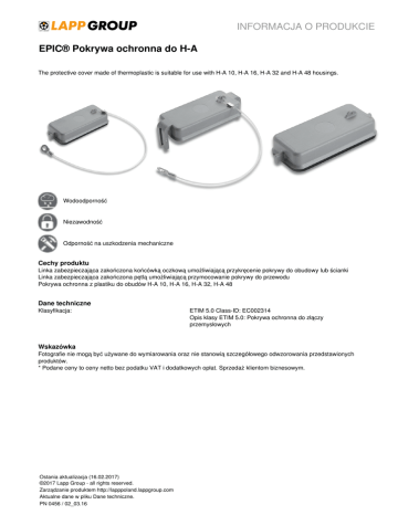 INFORMACJA O PRODUKCIE EPIC® Pokrywa ochronna do H-A