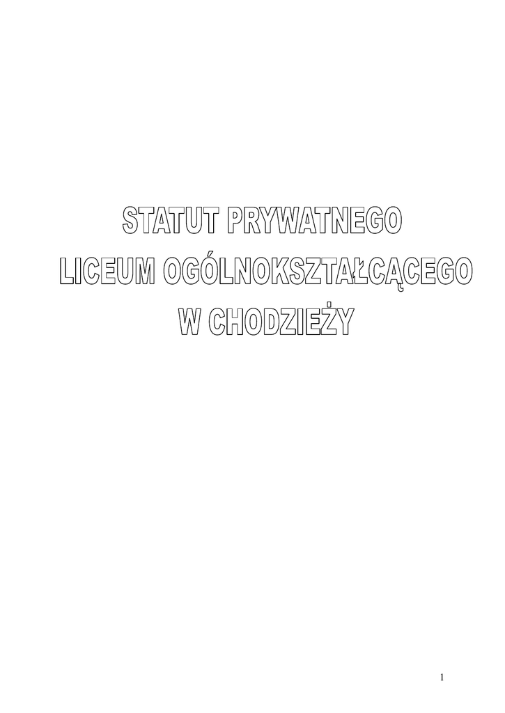 1 STATUT ZAWIERA: I. POSTANOWIENIA OGÓLNE II. CELE I ZADANIA LICEUM OGÓLNOKSZTAŁCĄCEGO III. ORGANY LICEUM I ICH KOMPETENCJE IV. ZASADY WSPÓŁDZIAŁANIA ORGANÓW LICEUM V. ZASADY ROZWIĄZYWANIA KONFLIKTÓW VI. ORGANIZACJA LICEUM VII. BIBLIOTEKA SZKOLNA VIII. NAUCZYCIELE I INNI PRACOWNICY LICEUM IX. ZASADY WSPÓŁDZIAŁANIA SZKOŁY Z RODZICAMI X. WEWNĄTRZSZKOLNY SYSTEM OCENIANIA ROZDZIAŁ I ZAŁOŻENIA OGÓLNE ROZDZIAŁ II ZWOLNIENIE Z ZAJĘĆ ROZDZIAŁ III FORMY I SPOSOBY USTALANIA OCEN ROZDZIAŁ IV ZASADY OCENIANIA I KLASYFIKACJI ROZDZIAŁ V KRYTERIA OCEN Z ZAJĘĆ EDUKACYJNYCH ROZDZIAŁ VI KRYTERIA OCEN ZACHOWANIA ROZDZIAŁ VII KLASYFIKOWANIE I PROMOWANIE UCZNIA ROZDZIAŁ VIII EGZAMIN KLASYFIKACYJNY ROZDZIAŁ IX EGZAMIN POPRAWKOWY ROZDZIAŁ X EGZAMIN SPRAWDZAJĄCY 2 ROZDZIAŁ XI SYSTEM NAGRÓD I KAR ROZDZIAŁ XII EGZAMIN PRZEPROWADZANY W OSTATNIM ROKU NAUKI W LICEUM ROZDZIAŁ XIII POSTANOWIENIA KOŃCOWE XI. UCZNIOWIE LICEUM ROZDZIAŁ I OBOWIĄZEK SZKOLNY ROZDZIAŁ II PRAWA I OBOWIĄZKI UCZNIA ROZDZIAŁ III NAGRODY I KARY XII. POSTANOWIENIA KOŃCOWE 3 I. POSTANOWIENIA OGÓLNE §1 Nazwa szkoły: Prywatne Liceum Ogólnokształcące w Chodzieży. Siedziba szkoły: ul. Mickiewicza 3, 64-800 Chodzież. Organem prowadzącym szkołę Teresa Przybyszewska. Nadzór pedagogiczny nad szkołą sprawuje Wielkopolski Kurator Oświaty. Cykl kształcenia w liceum trwa 3 lata. Warunkiem podjęcia nauki w liceum jest ukończenie gimnazjum. 7. Szkoła posiada charakter placówki niepublicznej z uprawnieniami szkoły publicznej. 8. Na pieczęciach używana jest nazwa: Prywatne Liceum Ogólnokształcące w Chodzieży 1. 2. 3. 4. 6. II. CELE I ZADANIA LICEUM. §1 1. Szkoła realizuje cele i zadania wynikające z przepisów prawa oświatowego, uwzględniając program wychowawczy szkoły i program profilaktyki dostosowany do potrzeb rozwojowych uczniów oraz potrzeb lokalnego środowiska. 2. Celem szkoły jest kształcenie i wychowanie młodzieży oraz przygotowanie do dalszego kształcenia i świadomego wyboru szkoły ponadgimnazjalnej. 3. Szkoła realizuje szczegółowe cele i zadania wynikające z podstawy programowej kształcenia ogólnego. 3.1 Edukacja szkolna w liceum, wspomagając osobowy rozwój ucznia i wprowadzając go w życie społeczne zapewnia w szczególności: wprowadza w świat nauki poprzez poznawanie języka, pojęć, twierdzeń i metod właściwych dla wybranych dyscyplin naukowych, - rozbudza i rozwija indywidualne zainteresowania ucznia, wprowadza go w świat kultury i sztuki kształtując właściwy stosunek do dziedzictwa kultury narodowej postrzeganej w perspektywie kultury europejskiej, rozwija umiejętności społeczne poprzez zdobywanie prawidłowych doświadczeń we współżyciu i współdziałaniu w grupie rówieśniczej i społeczności szkolnej, kształtuje właściwy stosunek do własnego zdrowia i zagrożeń cywilizacyjnych. 3.2 Szkoła zapewnia niezbędne warunki do rozwoju intelektualnego, emocjonalnego, duchowego i fizycznego. 3.3 Szkoła zapewnia opiekę nad uczniami z uwzględnieniem zasad bezpieczeństwa, ochrony zdrowia i promocji zdrowego stylu życia. §2 1. Realizacja celów i zadań szkoły następuje poprzez: 1.1 Rzetelną realizację szkolnego zestawu programów nauczania. a) w procesie nauczania stosowanie nowoczesnych metod i form pracy lekcyjnej, 4 b) wspieranie rozwoju ucznia kształcąc jego samodzielność intelektualną i umożliwiając dokonywanie wyborów edukacyjnych odpowiednio do jego uzdolnień, możliwości i osiągnięć. 1.2 Oddziaływania wychowawcze skierowane są na priorytety: - kształtowanie postaw społeczno - moralnych, - promocję działalności samorządu uczniowskiego, - wprowadzanie uczniów w świat szeroko pojętej kultury. 1.3 Prowadzenie kół zainteresowań i kół przedmiotowych, dodatkowych zajęć sportowych zgodnie z potrzebami uczniów i możliwościami szkoły. 1.4 Organizowanie zajęć dodatkowych (zajęć indywidualnych) dla uczniów z uwzględnieniem ich potrzeb rozwojowych. 1.5 Szkoła zapewnia bezpieczeństwo i ochronę zdrowia uczniów: - podczas przerw poprzez dyżury nauczycieli, - w czasie lekcji oraz w czasie zajęć pozalekcyjnych, - na wycieczkach szkolnych. 1.6 Szkoła zapewnia opiekę i pomoc uczniom, którym z przyczyn rozwojowych, rodzinnych, losowych potrzebna jest pomoc i wsparcie. a) szczególną troską otacza uczniów o specjalnych potrzebach edukacyjnych, b) świadczy pomoc pedagogiczną i psychologiczną udzielaną przez instytucje prowadzące poradnictwo specjalistyczne, c) prowadzi zajęcia dotyczące promocji zdrowego stylu życia, profilaktyki uzależnień, przemocy, d) organizuje pomoc materialną i rzeczową w ramach akcji charytatywnych organizowanych przez Samorząd Szkolny. 2. Szkoła ocenia, klasyfikuje i promuje uczniów według zasad określonych w Wewnątrzszkolnym Systemie Oceniania. §3 Dyrektor szkoły w celu ciągłego podnoszenia poziomu jakości pracy szkoły powołuje przedmiotowe, problemowe i wychowawcze zespoły nauczycieli, do wykonywania zadań statutowych lub zadań wynikających z bieżących problemów pracy szkoły. 2. Szkoła szanuje prawo rodziców /prawnych opiekunów/ do wychowywania dzieci, rzetelnej informacji o postępach, wynikach nauczania i zachowania. Kalendarz szkolny szczegółowo określa terminy zebrań klasowych, spotkań z wychowawcą klasy i nauczycielami przedmiotów. 2.1 Rodzice i prawni opiekunowie mają prawo do kontaktów indywidualnych z wychowawcą klasy i nauczycielami przedmiotów w innych terminach, po uprzednim umówieniu się z nauczycielem. 3. Szkoła współpracuje z rodzicami i prawnymi opiekunami ucznia w zakresie nauczania, wychowania i profilaktyki, organizuje wewnątrzszkolny system doradztwa oraz zajęć związanych z wyborem kierunku kształcenia. 3.1 Rodzice lub prawni opiekunowie mają prawo zgłaszać swoje postulaty i uwagi dotyczące nauczania, wychowania i profilaktyki poprzez klasowe rady rodziców do dyrektora Szkoły lub 