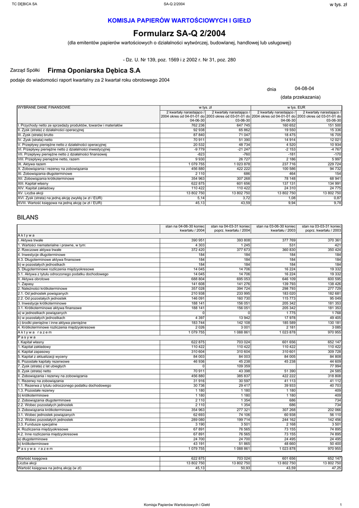 Formularz SA-Q 2/2004 - Relacje inwestorskie