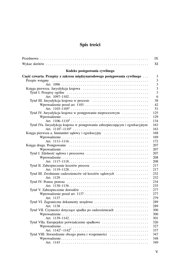 Spis treści Przedmowa . . . . . . . . . . . . . . . . . . . . . . . . . . . . . . . . . . . . . . . . . . . . . . . . . . . . . . . . IX Wykaz skrótów . . . . . . . . . . . . . . . . . . . . . . . . . . . . . . . . . . . . . . . . . . . . . . . . . . . . . XI Kodeks postępowania cywilnego Część czwarta. Przepisy z zakresu międzynarodowego postępowania cywilnego . . . Przepis wstępny . . . . . . . . . . . . . . . . . . . . . . . . . . . . . . . . . . . . . . . . . . . . . . . . . . Art. 1096 . . . . . . . . . . . . . . . . . . . . . . . . . . . . . . . . . . . . . . . . . . . . . Księga pierwsza. Jurysdykcja krajowa . . . . . . . . . . . . . . . . . . . . . . . . . . . . . . . . . . Tytuł I. Przepisy ogólne . . . . . . . . . . . . . . . . . . . . . . . . . . . . . . . . . . . . . . . . . . Art. 1097–1102 . . . . . . . . . . . . . . . . . . . . . . . . . . . . . . . . . . . . . . . . . Tytuł III. Jurysdykcja krajowa w procesie . . . . . . . . . . . . . . . . . . . . . . . . . . . . . Wprowadzenie przed art. 1103 . . . . . . . . . . . . . . . . . . . . . . . . . . . . . . . . . Art. 1103–11051 . . . . . . . . . . . . . . . . . . . . . . . . . . . . . . . . . . . . . . . . Tytuł IV. Jurysdykcja krajowa w postępowaniu nieprocesowym . . . . . . . . . . . . . . Wprowadzenie . . . . . . . . . . . . . . . . . . . . . . . . . . . . . . . . . . . . . . . . . . . . . Art. 1106–11102 . . . . . . . . . . . . . . . . . . . . . . . . . . . . . . . . . . . . . . . . Tytuł IVa. Jurysdykcja krajowa w postępowaniu zabezpieczającym i egzekucyjnym Art. 11103 –11104 . . . . . . . . . . . . . . . . . . . . . . . . . . . . . . . . . . . . . . . Księga pierwsza a. Immunitet sądowy i egzekucyjny . . . . . . . . . . . . . . . . . . . . . . . Wprowadzenie . . . . . . . . . . . . . . . . . . . . . . . . . . . . . . . . . . . . . . . . . . . . . Art. 1111–1116 . . . . . . . . . . . . . . . . . . . . . . . . . . . . . . . . . . . . . . . . . Księga druga. Postępowanie . . . . . . . . . . . . . . . . . . . . . . . . . . . . . . . . . . . . . . . . . Wprowadzenie . . . . . . . . . . . . . . . . . . . . . . . . . . . . . . . . . . . . . . . . . . . . . Tytuł I. Zdolność sądowa i procesowa . . . . . . . . . . . . . . . . . . . . . . . . . . . . . . . . Wprowadzenie . . . . . . . . . . . . . . . . . . . . . . . . . . . . . . . . . . . . . . . . . . . . . Art. 1117–1118 . . . . . . . . . . . . . . . . . . . . . . . . . . . . . . . . . . . . . . . . . Tytuł II. Zabezpieczenie kosztów procesu . . . . . . . . . . . . . . . . . . . . . . . . . . . . . Art. 1119–1128 . . . . . . . . . . . . . . . . . . . . . . . . . . . . . . . . . . . . . . . . . Tytuł III. Zwolnienie cudzoziemców od kosztów sądowych . . . . . . . . . . . . . . . . . Art. 1129 . . . . . . . . . . . . . . . . . . . . . . . . . . . . . . . . . . . . . . . . . . . . . Tytuł IV. Pomoc prawna . . . . . . . . . . . . . . . . . . . . . . . . . . . . . . . . . . . . . . . . . . Art. 1130–1136 . . . . . . . . . . . . . . . . . . . . . . . . . . . . . . . . . . . . . . . . . Tytuł V. Zabezpieczenie dowodów . . . . . . . . . . . . . . . . . . . . . . . . . . . . . . . . . . . Wprowadzenie przed art. 1137 . . . . . . . . . . . . . . . . . . . . . . . . . . . . . . . . . Art. 1137 . . . . . . . . . . . . . . . . . . . . . . . . . . . . . . . . . . . . . . . . . . . . . Tytuł VI. Zagraniczne dokumenty urzędowe . . . . . . . . . . . . . . . . . . . . . . . . . . . . Art. 1138 . . . . . . . . . . . . . . . . . . . . . . . . . . . . . . . . . . . . . . . . . . . . . Tytuł VII. Czynności dotyczące spadku po cudzoziemcach . . . . . . . . . . . . . . . . . Wprowadzenie . . . . . . . . . . . . . . . . . . . . . . . . . . . . . . . . . . . . . . . . . . . . . Art. 1139–1142 . . . . . . . . . . . . . . . . . . . . . . . . . . . . . . . . . . . . . . . . . Tytuł VIIa. Europejskie poświadczenie spadkowe . . . . . . . . . . . . . . . . . . . . . . . . Wprowadzenie . . . . . . . . . . . . . . . . . . . . . . . . . . . . . . . . . . . . . . . . . . . . . Art. 11421 –11427 . . . . . . . . . . . . . . . . . . . . . . . . . . . . . . . . . . . . . . . Tytuł VIII. Stwierdzenie obcego prawa i wzajemności . . . . . . . . . . . . . . . . . . . . Wprowadzenie . . . . . . . . . . . . . . . . . . . . . . . . . . . . . . . . . . . . . . . . . . . . . Art. 1143 . . . . . . . . . . . . . . . . . . . . . . . . . . . . . . . . . . . . . . . . . . . . . 3 3 3 3 3 6 38 42 51 125 129 134 163 163 168 169 172 207 207 207 208 208 217 217 232 232 234 235 277 277 279 289 289 300 300 301 326 327 337 347 348 349 V Spis treści Tytuł IX. Uzasadnienie prawomocnych orzeczeń i wydawanie zaświadczeń . . . . . Art. 1144–11441 . . . . . . . . . . . . . . . . . . . . . . . . . . . . . . . . . . . . . . . . Tytuł X. Wniosek o uchylenie wyroku wydanego w sprawie alimentacyjnej . . . . . Art. 11442 . . . . . . . . . . . . . . . . . . . . . . . . . . . . . . . . . . . . . . . . . . . . Tytuł XI. Europejski nakaz zabezpieczenia na rachunku bankowym . . . . . . . . . . . Wprowadzenie . . . . . . . . . . . . . . . . . . . . . . . . . . . . . . . . . . . . . . . . . . . . . Art. 11443 –114413 . . . . . . . . . . . . . . . . . . . . . . . . . . . . . . . . . . . . . . . Księga trzecia. Uznanie i stwierdzenie wykonalności . . . . . . . . . . . . . . . . . . . . . . . Tytuł I. Uznanie orzeczeń sądów państw obcych lub rozstrzygnięć innych organów państw obcych . . . . . . . . . . . . . . . . . . . . . . . . . . . . . . . . . . . . . . . . . . . . . . . Art. 1145–11491 . . . . . . . . . . . . . . . . . . . . . . . . . . . . . . . . . . . . . . . . Tytuł II. Wykonalność orzeczeń sądów państw obcych lub rozstrzygnięć innych organów państw obcych oraz ugód zawartych przed takimi sądami i organami lub przez nie zatwierdzonych . . . . . . . . . . . . . . . . . . . . . . . . . . . . . . . . . . . . Art. 1150–1153 . . . . . . . . . . . . . 