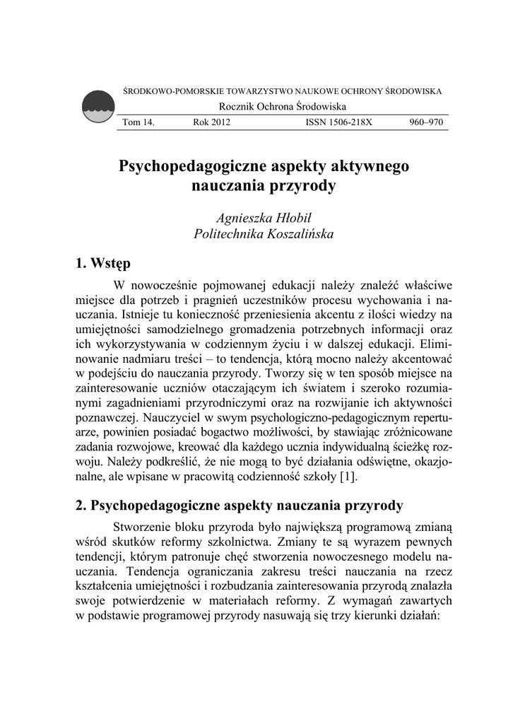 Psychopedagogiczne aspekty aktywnego nauczania przyrody