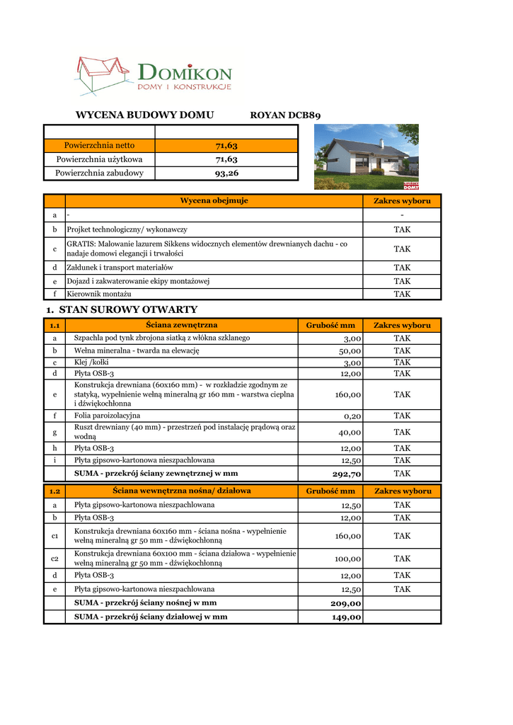 1. STAN SUROWY OTWARTY WYCENA BUDOWY DOMU