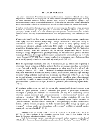 SYTUACJA MORALNA W nauczaniu Jana Pawła II na temat s.m.