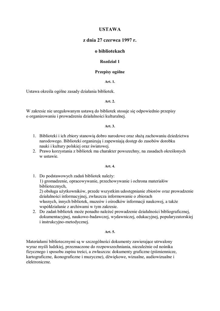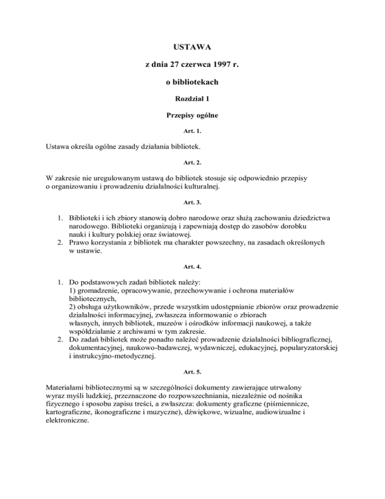 USTAWA z dnia 27 czerwca 1997 r. o bibliotekach