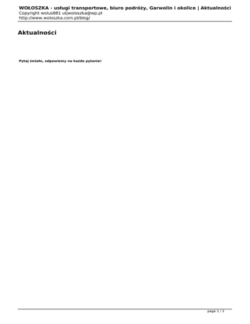 WOŁOSZKA - usługi transportowe, biuro podróży, Garwolin i okolice | Aktualności Copyright wolus881 [email protected] http://www.woloszka.com.pl/blog/ Aktualności Pytaj śmiało, odpowiemy na każde pytanie! page 1 / 1
