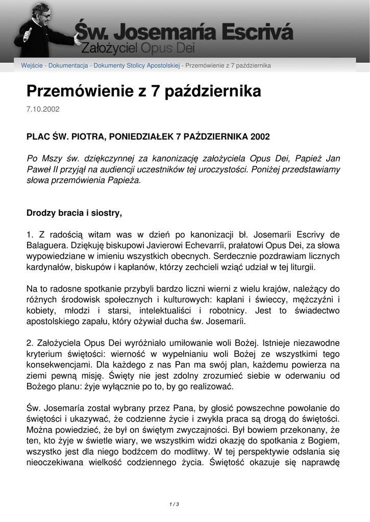 Przemówienie z 7 października - Święty Josemaria Escriva