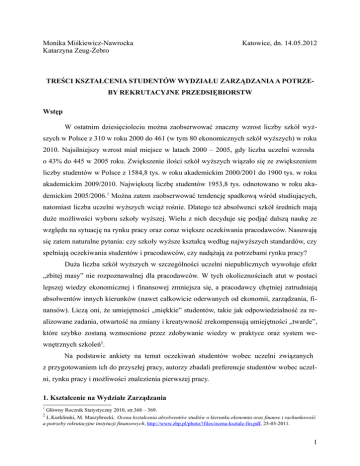 TREŚCI KSZTAŁCENIA STUDENTÓW WYDZIAŁU ZARZĄDZANIA A POTRZEBY REKRUTACYJNE PRZEDSIĘBIORSTW