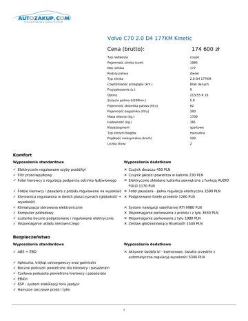 Volvo C70 2.0 D4 177KM Kinetic Cena (brutto