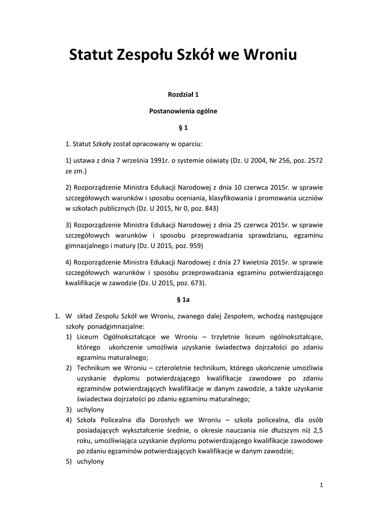 Statut Zespołu Szkół we Wroniu