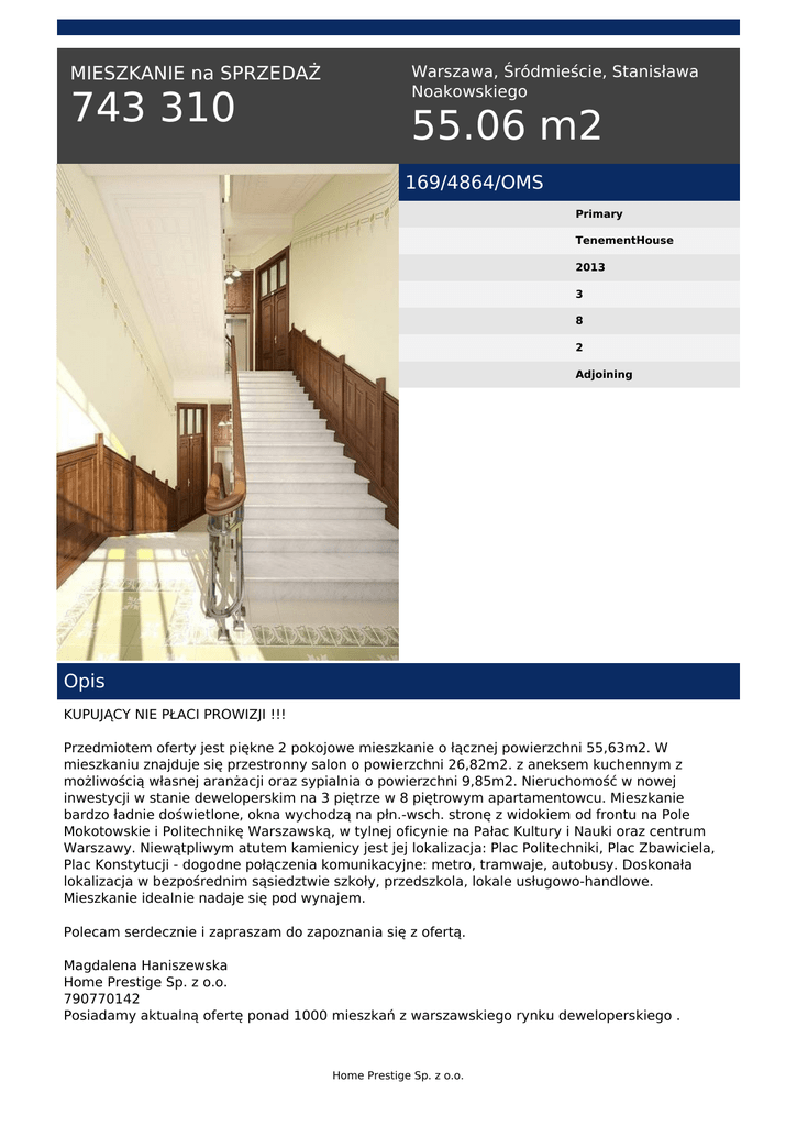 743 310 55.06 m2 - Home Prestige, Warszawa