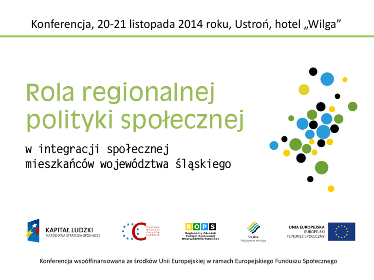 Konferencja, 20-21 listopada 2014 roku, Ustroń, hotel „Wilga” Rola regionalnej polityki społecznej w integracji społecznej mieszkańców województwa śląskiego Konferencja współfinansowana ze środków Unii Europejskiej w ramach Europejskiego Funduszu Społecznego Zenon Gajdzica Uniwersytet Śląski w Katowicach Wydział Etnologii i Nauk o Edukacji w Cieszynie Dobre praktyki wzmacniania uczestnictwa osób niepełnosprawnych w życiu społecznym – uwagi na marginesie uaktualnianej Wojewódzkiej Strategii Polityki Społecznej •Wprowadzenie • Kilka uwag o uczestnictwie społecznym osób z niepełnosprawnością w codziennym życiu •Bariery uczestnictwa •Aktualizacja Wojewódzkiej Strategii Polityki Społecznej na lata 2014-2020 •Działania zaakcentowane w Strategii jako przykład dobrych praktyk antycypowanych •Konkluzje końcowe Uczestnictwo społeczne osób z niepełnosprawnością – wybrane obszary 1. edukacja w rożnych formach (realizacja obowiązku szkolnego, kształcenie ustawiczne), 2. zatrudnienie (chroniony i otwarty rynek pracy), 3. udział w gremiach decyzyjnych kreujących politykę lokalną w różnych zakresach, 4. partycypowanie w dobrach kultury i rożnych formach rekreacji, 5. wsparcie społeczne, leczenie, rehabilitacja, 6. życie rodzinne – relacje sąsiedzkie. Przeszkody w procesie włączania osób niepełnosprawnych do życia społecznego Bariery architektoniczne Bariery mentalne Bariery edukacyjne Bariery zawodowe Bariery prawne Bariery osobiste Aktualizacja Wojewódzkiej Strategii Polityki Społecznej na lata 2014-2020 Cel: Wzmacnianie uczestnictwa osób niepełnosprawnych w życiu społecznym Aktualizacja Wojewódzkiej Strategii Polityki Społecznej w zakresie funkcjonowania społecznego osób z niepełnosprawnością ma na celu przede wszystkim uaktualnienie sformułowanych wcześniej celów i zadań, a zarazem ich rozszerzenie o nowe wyzwania w obszarze działań na rzecz wskazanej grupy osób. Aktualizacja strategii w polu wzmacniania równych szans osób niepełnosprawnych jest następstwem: •intensywnych zmian społeczno-ekonomicznych oraz wynikających z nich przemian polityki społecznej, •poszerzenia katalogu zadań samorządu województwa, między innymi w zakresie aktywizacji, integracji oraz reintegracji społecznej i zawodowej osób i rodzin zagrożonych wykluczeniem społecznym (Dz. U. 2013, poz. 182 ze zm.), •ponadto kształt przyszłej polityki spójności w Polsce w latach 2014-2020 został określony w Założeniach do Umowy Partnerstwa, dokumentu Ministerstwa Rozwoju Regionalnego, gdzie jednym spośród jedenastu celów jest: promowanie włączania społecznego oraz przeciwdziałanie ubóstwu, co jest także ważnym zadaniem w obszarze kreowania polityki społecznej wobec osób z niepełnosprawnością. Działania zaakcentowane w Strategii jako przykład dobrych praktyk antycypowanych Kierunek działań 3.1.: Kształtowanie postaw prospołecznych sprzyjających kreowaniu środowiska przyjaznego osobom niepełnosprawnym Kierunek działań 3.2.: Poprawa dostępności osób niepełnosprawnych do edukacji Kierunek działań 3.3.: Poprawa dostępności osób niepełnosprawnych do informacji Kierunek działań 3.4.: Poprawa zatrudnienia i wzmacnianie aktywizacji społeczno-zawodowej osób niepełnosprawnych Kierunek działań 3.5.: Integrowanie i inicjowanie działań różnych podmiotów w zakresie wzmacniania wsparcia i uczestnictwa społecznego osób niepełnosprawnych Działanie Realizator Źródła finansowania 1. Organizacja akcji edukacyjno-informacyjnych w społeczności lokalnej, np. dni godności, sąsiada, święto ulicy, pikniki itp. JST, NGO budżety JST, środki finansowe NGO, fundusze UE 2. Uruchomienie wojewódzkiej wypożyczalni specjalistycznego sprzętu edukacyjnego udostępniającego sprzęt na czas edukacji ucznia Samorządu Województwa, KO, PFRON, NGO budżety JST, fundusze UE, PFRON, środki finansowe NGO 3. Utworzenie wojewódzkiej powszechnie dostępnej bazy danych integrującej informacje z wielu wąskozakresowych baz danych dotyczących osób niepełnosprawnych (praw i ich realizacji, możliwości wsparcia itp.) Pełnomocnik ds. Osób Niepełnosprawnych przy Marszałku Województwa Śląskiego Budżet Samorządu Województwa, fundusze UE 4. Intensyfikacja zatrudniania osób niepełnosprawnych w instytucjach publicznych JST, Samorząd Województwa PFRON, budżet S W, budżety JST, fundusze UE 5. Wdrożenie „Karty osoby niepełnosprawnej”, uprawniającej do zniżek w instytucjach kultury oraz w obiektach sportowych administrowanych przez województwo W Ś, Pełnomocnik ds. Osób Niepełnospr. przy Marszałku Województwa Śląskiego budżet Samorządu Województwa Działanie Popularyzacja i zapewnienie finansowania usługi „trener pracy” zgodnie ze standardem PFRON Realizator Źródła finansowania JST, Samorządu Województwa PFRON, budżet Samorządu Województwa, budżety JST, fundusze UE Zapewnienie finansowania i organizacja staży zawodowych i absolwenckich oraz praktyk dla osób z niepełnosprawnością, jako formy aktywizacji zawodowej, w tym organizacja miejsc stażowych w samorządach i jednostkach samorządu terytorialnego oraz podmiotach ekonomii społecznej Organizowanie szkoleń służących wzrostowi wiedzy pracodawców i pracowników działów księgowokadrowych nt. zasad zatrudniania osób z niepełnosprawnością i rozliczania SODiR Organizowanie akcji informacyjnych na temat zawodowego potencjału osób niepełnosprawnych PFRON, JST PFRON, budżet Samorządu Województwa, budżety JST, fundusze UE, Fundusz Pracy PFRON, NGO PFRON, budżet Samorządu Województwa, budżety JST, środki finansowe NGO, fundusze UE PFRON, NGO, Samorząd Województwa PFRON, Budżet Samorządu Województwa, budżety JST, środki finansowe NGO, fundusze UE Wspieranie powstawania podmiotów ekonomii społecznej, w tym: spółdzielni socjalnych i Zakładów Aktywności Zawodowej Samorząd Woje