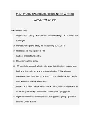 plan pracy samorządu szkolnego w roku szkolnym 2013/14
