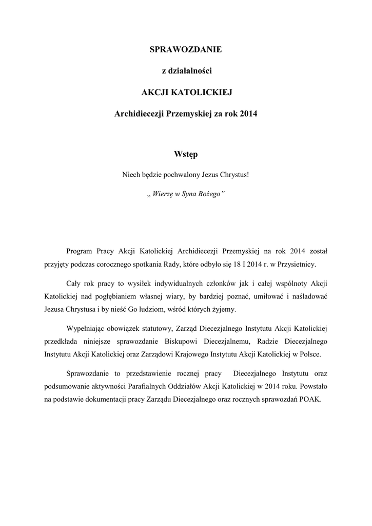 SPRAWOZDANIE z działalności AKCJI KATOLICKIEJ Archidiecezji