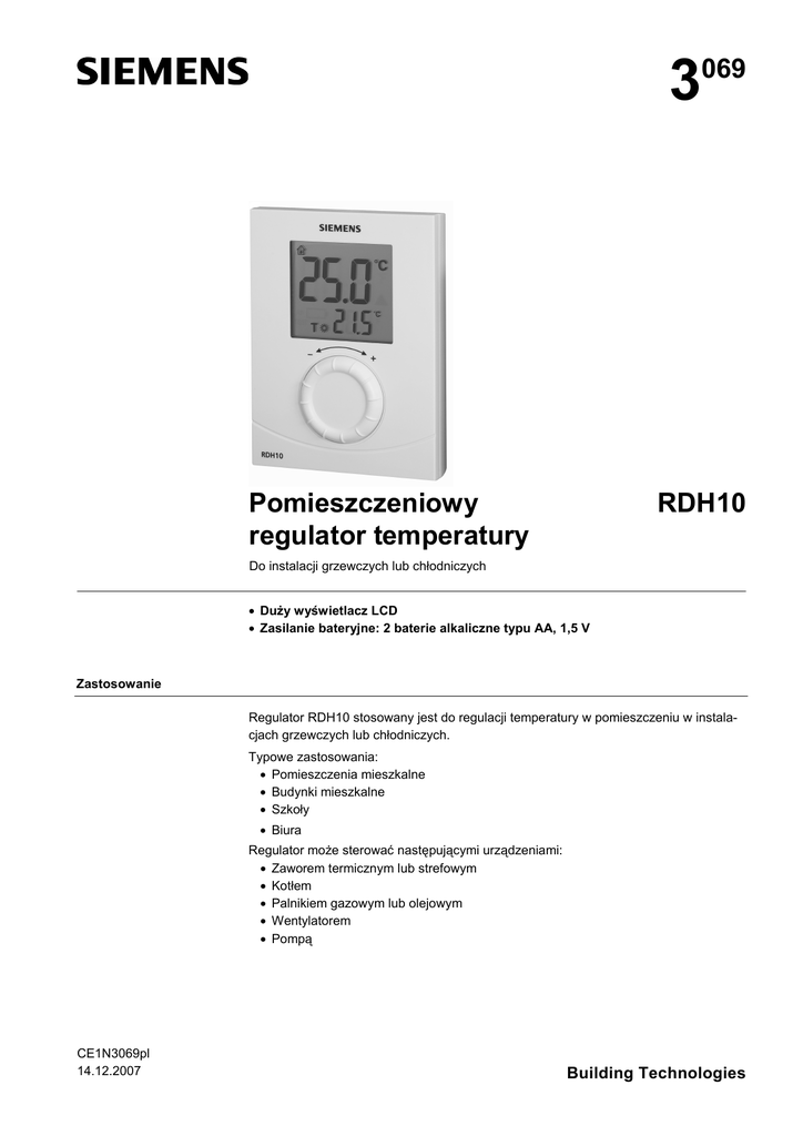 3069 Pomieszczeniowy regulator temperatury RDH10