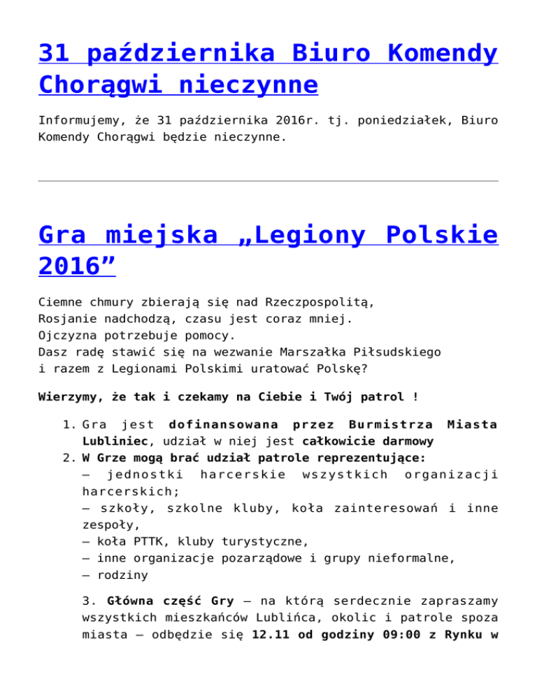 31 października Biuro Komendy Chorągwi nieczynne,Gra