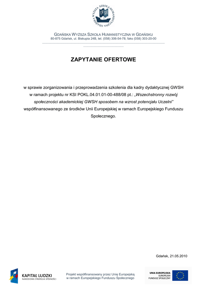 zapytanie ofertowe - Gdańska Wyższa Szkoła Humanistyczna