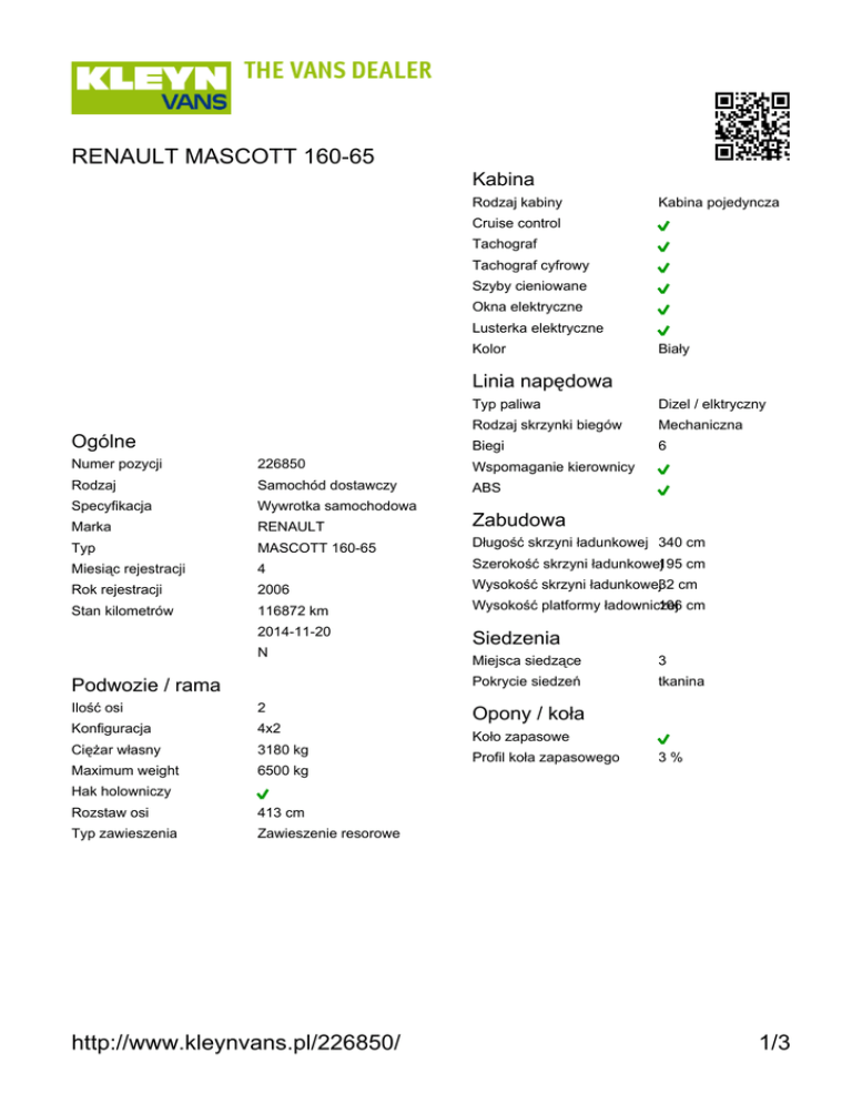 http://www.kleynvans.pl/226850/ 1/3 RENAULT MASCOTT 160-65