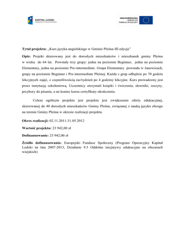 Tytuł projektu: „Kurs języka angielskiego w Gminie Pleśna