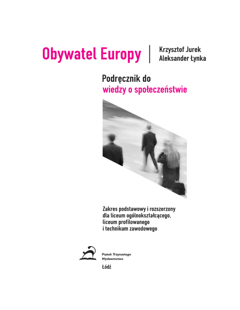 Podrêcznik zgodny z Programem nauczania wiedzy o spo³eczeñstwie w zakresie podstawowym i rozszerzonym dla liceum ogólnokszta³c¹cego, liceum profilowanego i technikum. Obywatel Europy, dopuszczonym do u¿ytku szkolnego przez ministra w³aciwego do spraw owiaty i wychowania i wpisanym do wykazu programów szkolnych do kszta³cenia na poziomie szkó³ ponadgimnazjalnych pod numerem DKOS-4015-236/02. Redakcja i korekta Teresa Chwaliñska Jolanta Pol Micha³ Koliñski Konsultacja prawna Marcin Grzelak Projekt ok³adki Jacek Wilk Sk³ad Pawe³ Szewczyk © Copyright by Krzysztof Jurek, Aleksander £ynka, £ód 2003 © Copyright by Pi¹tek Trzynastego, £ód 2003 Wszelkie prawa autorskie i wydawnicze zastrze¿one. Wszelkiego rodzaju reprodukowanie, powielanie (³¹cznie z kserokopiowaniem), przenoszenie na inne noniki bez pisemnej zgody Wydawcy jest traktowane jako naruszenie praw autorskich, ³¹cznie z konsekwencjami przewidzianymi w Ustawie o prawie autorskim i prawach pokrewnych (Dz. U. nr 24 z 23.02.1994 r., poz. 83). ISBN 83-88742-53-1 PI¥TEK TRZYNASTEGO Wydawnictwo Micha³ Koliñski i Micha³ Wiercioch 90-009 £ód, ul. H. Sienkiewicza 61 tel./fax (0-42) 632 78 61, 630 71 17, tel. 0-602 34 98 02(06) infolinia: 0-604 600 800 (codziennie 8-22, tak¿e sms), gg. 4147954, 4146841 www.piatek13.com.pl; e-mail: [email protected] £ód Wydanie I rok: 2007 2006 2005 2004 rzut: 9 8 7 6 5 4 3 2 1 Druk i oprawa: PI¥TEK TRZYNASTEGO Drukarnia 93-345 £ód, ul. Paradna 3 tel. 0-602 34 98 02(06) Printed in Poland 2 | Obywatel Europy ostatnia liczba Spis treci CZÊÆ I. SPO£ECZEÑSTWO .............................. 7 Jednostka grupa spo³eczeñstwo 1. Cz³owiek w spo³eczeñstwie ............................................. 9 Cz³owiek jako istota spo³eczna .................................. 9 Cz³owiek jako jednostka ........................................... 10 Cz³owiek a wiêzi spo³eczne ...................................... 12 2. Grupy spo³eczne ............................................................ 13 Grupa spo³eczna i jej struktura ................................. 13 Typologia grup spo³ecznych ..................................... 14 Jednostka w ró¿nych grupach spo³ecznych (konflikt powinnoci) ................................................ 16 3. Rodzina jako podstawowa grupa spo³eczna .............. 17 Pojêcie rodziny .......................................................... 17 Funkcje i typy rodziny .............................................. 18 Problemy wspó³czesnej rodziny ............................... 19 4. Spo³eczeñstwo ................................................................ 21 Pojêcie spo³eczeñstwa i ró¿ne jego rozumienie ....... 21 Cz³owiek twórc¹ rzeczywistoci spo³ecznej ............ 22 Proces socjalizacji a role spo³eczne ......................... 22 5. Struktura spo³eczeñstwa ............................................... 24 Pojêcie i koncepcje struktury spo³ecznej ................. 24 Elementy struktury spo³ecznej ................................. 25 Zmiennoæ struktury spo³ecznej ............................... 26 6. Instytucje spo³eczne ...................................................... 27 Instytucje spo³eczne i ich rodzaje ............................. 27 Funkcje instytucji spo³ecznych ................................ 27 Instytucje a organizacje spo³eczne ........................... 27 7. Historyczne formy organizacji spo³eczeñstwa ........... 29 Spo³eczeñstwo pierwotne ......................................... 29 Spo³eczeñstwo niewolnicze ...................................... 29 Spo³eczeñstwo feudalne ........................................... 30 Spo³eczeñstwo kapitalistyczne ................................. 30 Spo³eczeñstwo otwarte i zamkniête ......................... 31 8. Wspó³czesne formy organizacji spo³eczeñstwa ......... 33 Spo³eczeñstwo industrialne ...................................... 33 Spo³eczeñstwo postindustrialne ............................... 33 Spo³eczeñstwo globalne ........................................... 33 Spo³eczeñstwo informacyjne .................................... 34 9. Naród i to¿samoæ narodowa ....................................... 36 Naród i czynniki narodotwórcze .............................. 36 To¿samoæ narodowa ................................................ 37 Charakter narodowy i stereotypy narodowe ............ 37 Spis treści 10. Patriotyzm i nacjonalizm .............................................. 39 Patriotyzm i nacjonalizm .......................................... 39 Symbole narodowe ................................................... 40 Emigracja .................................................................. 40 Spo³eczeñstwo obywatelskie a spo³eczeñstwo polskie 11. Samoorganizuj¹ce siê spo³eczeñstwo .......................... 42 Samoorganizowanie siê jako podstawa spo³eczeñstwa obywatelskiego ................................. 42 Spo³eczeñstwo obywatelskie w systemach demokratycznych i niedemokratycznych ................. 43 Prawo niepos³uszeñstwa obywatelskiego ................ 44 12. Wzory obywatelskiego dzia³ania ................................. 46 Udzia³ w ¿yciu spo³ecznoci lokalnej ...................... 46 Uczestnictwo w ¿yciu publicznym ........................... 47 Inicjatywy obywatelskie ........................................... 48 13. Rola interesów grupowych ........................................... 49 Potrzeby i aspiracje ró¿nych grup spo³ecznych ....... 49 Konflikty interesów grupowych i ich wyra¿anie ..... 49 Interesy grupowe a jednostka ................................... 50 14. £ad spo³eczny ................................................................. 51 Pojêcie ³adu spo³ecznego .......................................... 51 Czynniki kszta³tuj¹ce ³ad spo³eczny ........................ 51 Teorie ³adu spo³ecznego ........................................... 52 15.