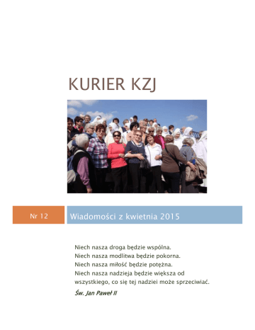 KURIER KZJ Nr 12 Wiadomości z kwietnia 2015 Niech nasza droga będzie wspólna. Niech nasza modlitwa będzie pokorna. Niech nasza miłość będzie potężna. Niech nasza nadzieja będzie większa od wszystkiego, co się tej nadziei może sprzeciwiać. Św. Jan Paweł II Nr 12 Kurier Koleżeńskiego Zjednoczenia Jazłowieckiego 1 RELACJA Z PIELGRZYMKI DO CZĘSTOCHOWY W kwietniową sobotę (tym razem był to 11-ty kwietnia), zgodnie z tradycją, udaliśmy się z pielgrzymką do Częstochowy, aby powierzyć Królowej Polski KZJ, Zgromadzenie, nasz kraj, nasze rodziny i wszelkie trudne sprawy. O godz. 10 spotkaliśmy się w Sali Różańcowej. Okazało się, że jest nas – Sióstr, wychowanek i wychowanków – ok.150, z różnych stron Polski: Najliczniej reprezentowany był Nowy Sącz i Koło warszawskie z podwarszawskim, Szymanowem i Wrzosowem, ale byli też przedstawiciele Wrocławia, Torunia, Jarosławia, a także pojedyńcze osoby z Rabki, Krosna, Dursztyna, Kościerzyny i Bydgoszczy. Organizatorka – przewodnicząca Koła warszawskiego – Basia Ciszewska powitała zgromadzonych i poprosiła o zabranie głosu M. Wawrzynę. Matka osnuła swoje słowa wokół zdania św. Jana Pawła II o tym,że należy patrzeć w przeszłość z wdzięcznością, w przyszłość z nadzieją, a na teraźniejszość z pasją. Ten sposób patrzenia na życie pozwala działać w sposób dający długotrwałe pozytywne efekty, jak również tworzy pomiędzy ludźmi silne więzi nie ulegające zniszczeniu pod wpływem czasu. Przykładem takich więzi jest nasza obecność tu i teraz. Matka następnie poprosiła S. Macieję o relację ze spotkania byłych wychowanków Wrzosowa – przedszkolaków sprzed lat. S.Macieja opowiedziała, jak narodził się pomysł zorganizowania – na wzór zjazdów wychowanek szkól – zjazdu wychowanków przedszkola we Wrzosowie, które działa od 1945 roku i jak na te zjazd stawiły się dawne przedszkolaki – obecnie starsi państwo nierzadko o laseczce. Na zakończenie przedstawił się nam ks. Stanisław Kaczmarek, który uczestniczył w naszej pielgrzymce na miejsce ks. Jana Sikorskiego, któremu zdrowie nie pozwoliło z nami pojechać. Ok. 11.30 zakończyliśmy spotkanie, aby o 12.00 spotkać się w Kaplicy Cudownego Obrazu na Mszy Św. Ze względu na brak miejsca do samej ścisłej Kaplicy zaproszono tylko Siostry (i to też Nr 12 Kurier Koleżeńskiego Zjednoczenia Jazłowieckiego 2 nie wszystkie weszły), kilka starszych osób, oraz osoby czytające teksty. Msza św. koncelebrowana z powodu obecności licznych innych grup pielgrzymkowych, ale „nasz” ksiądz był głównym celebransem. Czytanie Pisma Św. w wykonaniu Marysi Harasymowicz, modlitwę wiernych odmówiła Basia Ciszewska, a modlitwę zawierzenia na zakończenie Mszy św. przeczytała Marta Mieszkowska. Poczekaliśmy kilka minut w kaplicy na uroczyste zasłonięcie obrazu o godz. 13.00, następnie można było pozostać na „prywatnym” spotkaniu z Maryją i Jej Synem w kaplicy, napisać swoje intencje i prośby do Matki Bożej, lub w inny sposób spędzić pozostałe kilkanaście minut, a następnie spotkaliśmy się na murach by wziąć udział w ostatnim wydarzeniu naszej pielgrzymki – Drodze Krzyżowej pięknie poprowadzonej przez ks. Stanisława, której każda stacja dodatkowo była ilustrowana poezją. Jeszcze tylko, jak każe tradycja, grupowe zdjęcie na schodach – i z trudem zaczynamy się żegnać. Grupy wyznaczają sobie terminy spotkań przy autobusach i powoli się rozchodzimy. Wyjeżdżamy z Częstochowy ubogacone i wzmocnione duchowo, ale również – myślę – wzruszone, odczuwając na nowo więzi łączące nas między sobą (w tym mam na myśli również Siostry), a przede wszystkim łączące nas z tym miejscem, tak bogatym w ducha i tradycję, skąd Pani Jasnogórska od wieków spogląda na naród oddany Jej w macierzyńską opiekę. Naród, którego stanowimy drobną cząstkę, a który tak bardzo potrzebuje teraz Jej wstawiennictwa. Wierzymy, że – jak w XVII wieku, jak w roku 1920 – tak i teraz okryje nas Swoim płaszczem. Marta Mieszkowska MODLITWA ZAWIERZENIA MARYJO JASNOGÓRSKA – NASZA MATKO, PANI I KRÓLOWO Na tym miejscu wielkiego zawierzenia, oddajemy Ci w opiekę i do dyspozycji naszą Niepokalańską Rodzinę – Siostry i Wychowanki. Nr 12 Kurier Koleżeńskiego Zjednoczenia Jazłowieckiego 3 Matko Łaski Bożej zawierzamy Ci te koleżanki, które wypełniły swoje zadania i są już w wieczności. Matko uproś dla nich pełnię szczęścia w niebie, oraz to, aby mogły wraz z Tobą orędować za nami. ZAWIERZAMY Bramo Niebieska zawierzamy Ci te siostry i wychowanki, dla których zbliża się wieczór życia. Pochyl się też Pani nad tymi, które nie mogą być tutaj z nami, bądź dla nich znakiem nadziei i pociechy. ZAWIERZAMY Matko Niepokalańskiego Zgromadzenia zawierzamy Ci jego charyzmat wychowania młodego pokolenia i poszerzania Bożego obszaru w rodzinach. Niech ciągle na nowo odczytywanym drogowskazem będzie Błogosławiona Matka Marcelina – Sługa wierna Ci do końca. ZAWIERZAMY Jasnogórska Królowo Rodzin zawierzamy Ci nasze rodziny, wszystkie polskie rodziny i wszystkie rodziny na świecie. Ustrzeż je od kryzysu wiary i wartości. Powierzamy ci najmłodsze z nas, przygotowujące się pod opieką Niepokalańskiego Zgromadzenia do założenia nowych, chrześcijańskich rodzin. Spraw Pani, niech staną się nadzieją na odrodzenie moralne narodu. ZAWIERZAMY Wspomożycielko Wiernych zawierzamy Ci Koleżeńskie Zjednoczenie Jazłowieckie. Jasnogórska Królowo kieruj nami, pomóż przezwyciężać trudności, ukazuj nam istotne potrzeby. ZAWIERZAMY Matko Zawierzenia ratuj te dzieci Twoje, które nie ustrzegły wiary i te, którym wiara nie została przekazana w rodzinach. Niech się odrodzą do żywej nadziei i miłości. ZAWIERZAMY Częstochowska Pani Królowo Polski zawierzamy Ci naszą ojczyznę. Naucz nas odpowiedzialności za zadan