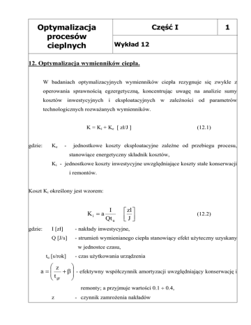 Pierwszy człon wzoru (12.3) jest związany z kosztami inwestycyjnymi, drugi natomiast z