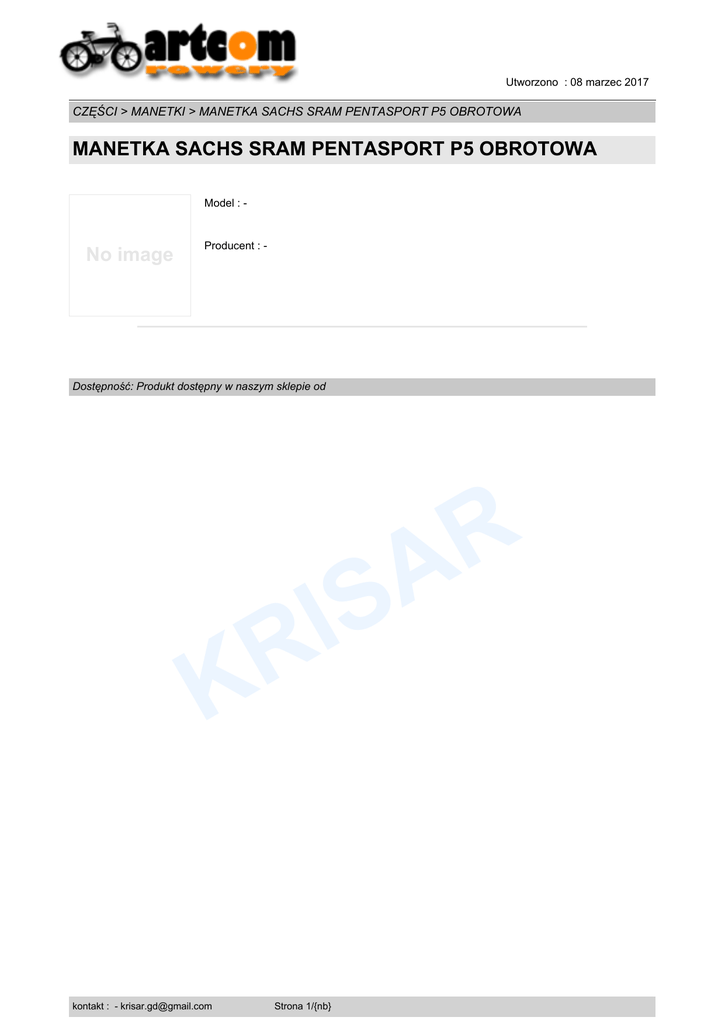 Utworzono : 08 marzec 2017 CZĘŚCI > MANETKI > MANETKA SACHS SRAM PENTASPORT P5 OBROTOWA MANETKA SACHS SRAM PENTASPORT P5 OBROTOWA Model : - No image Producent : - Dostępność: Produkt dostępny w naszym sklepie od R A K kontakt : - [email protected] S I R Strona 1/{nb}