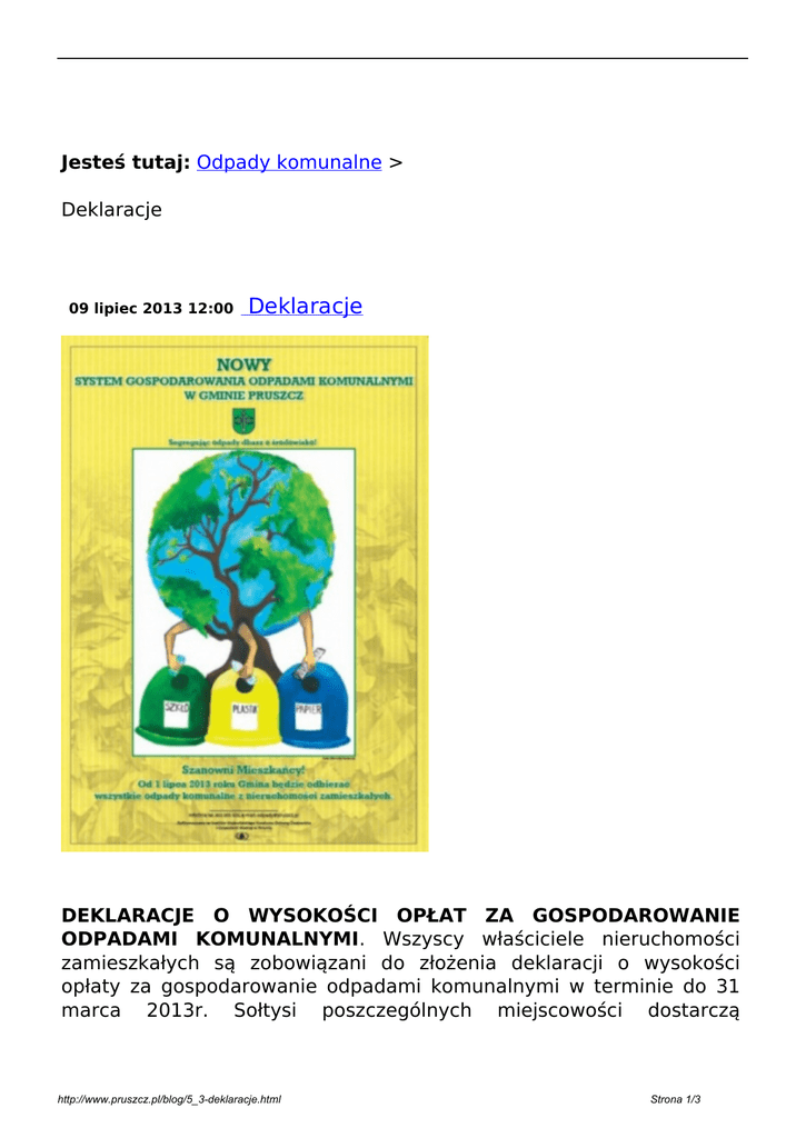 Jesteś tutaj: Odpady komunalne > Deklaracje DEKLARACJE O