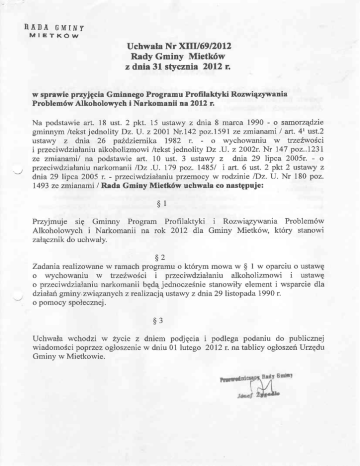 Uchwała Nr XIIV69/2012 Rady Gminy Mietków zdnia3lstycznia