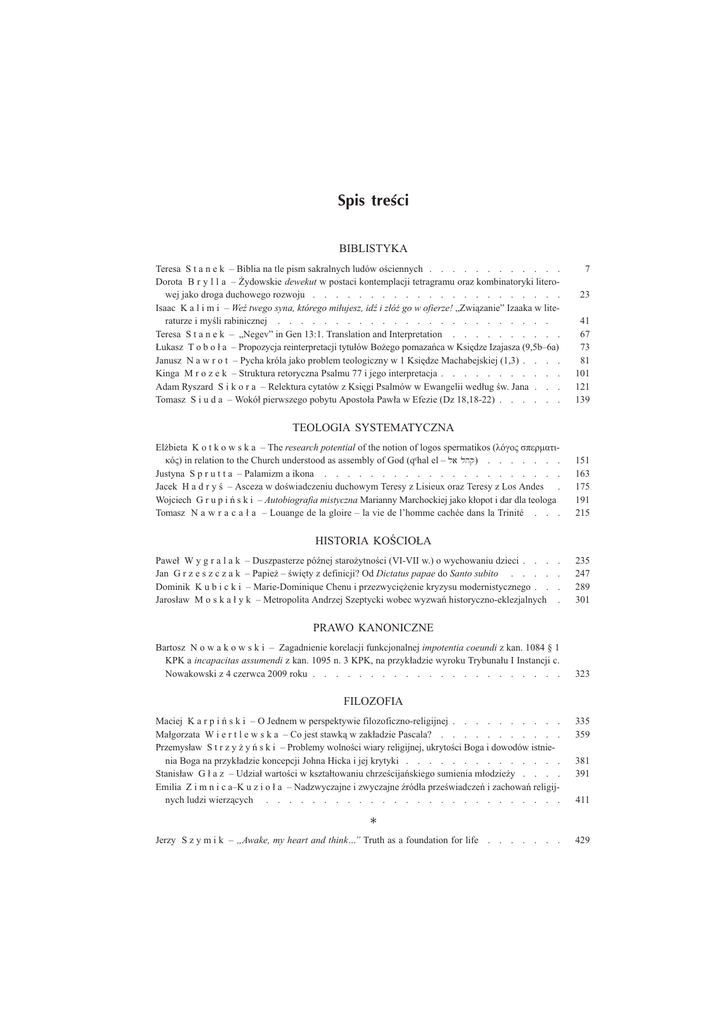 Spis treci BIBLISTYKA Teresa S t a n e k Biblia na tle pism sakralnych ludów ociennych . . . . . . . . . . . . Dorota B r y l l a ¯ydowskie dewekut w postaci kontemplacji tetragramu oraz kombinatoryki literowej jako droga duchowego rozwoju . . . . . . . . . . . . . . . . . . . . . . Isaac K a l i m i We twego syna, którego mi³ujesz, id i z³ó¿ go w ofierze! Zwi¹zanie Izaaka w literaturze i myli rabinicznej . . . . . . . . . . . . . . . . . . . . . . . . Teresa S t a n e k Negev in Gen 13:1. Translation and Interpretation . . . . . . . . . . £ukasz T o b o ³ a Propozycja reinterpretacji tytu³ów Bo¿ego pomazañca w Ksiêdze Izajasza (9,5b6a) Janusz N a w r o t Pycha króla jako problem teologiczny w 1 Ksiêdze Machabejskiej (1,3) . . . . Kinga M r o z e k Struktura retoryczna Psalmu 77 i jego interpretacja . . . . . . . . . . . Adam Ryszard S i k o r a Relektura cytatów z Ksiêgi Psalmów w Ewangelii wed³ug w. Jana . . . Tomasz S i u d a Wokó³ pierwszego pobytu Aposto³a Paw³a w Efezie (Dz 18,18-22) . . . . . . 7 23 41 67 73 81 101 121 139 TEOLOGIA SYSTEMATYCZNA El¿bieta K o t k o w s k a The research potential of the notion of logos spermatikos (ëüãïò óðåñìáôéêüò) in relation to the Church understood as assembly of God (qehal el la lhq) . . . . . . . Justyna S p r u t t a Palamizm a ikona . . . . . . . . . . . . . . . . . . . . . Jacek H a d r y Asceza w dowiadczeniu duchowym Teresy z Lisieux oraz Teresy z Los Andes . Wojciech G r u p i ñ s k i Autobiografia mistyczna Marianny Marchockiej jako k³opot i dar dla teologa Tomasz N a w r a c a ³ a Louange de la gloire la vie de lhomme cachée dans la Trinité . . . 151 163 175 191 215 HISTORIA KOCIO£A Pawe³ W y g r a l a k Duszpasterze pónej staro¿ytnoci (VI-VII w.) o wychowaniu dzieci . . . Jan G r z e s z c z a k Papie¿ wiêty z definicji? Od Dictatus papae do Santo subito . . . . Dominik K u b i c k i Marie-Dominique Chenu i przezwyciê¿enie kryzysu modernistycznego . . Jaros³aw M o s k a ³ y k Metropolita Andrzej Szeptycki wobec wyzwañ historyczno-eklezjalnych . . . . 235 247 289 301 Bartosz N o w a k o w s k i Zagadnienie korelacji funkcjonalnej impotentia coeundi z kan. 1084 § 1 KPK a incapacitas assumendi z kan. 1095 n. 3 KPK, na przyk³adzie wyroku Trybuna³u I Instancji c. Nowakowski z 4 czerwca 2009 roku . . . . . . . . . . . . . . . . . . . . . . 323 PRAWO KANONICZNE FILOZOFIA Maciej K a r p i ñ s k i O Jednem w perspektywie filozoficzno-religijnej . . . . . . . . . . Ma³gorzata W i e r t l e w s k a Co jest stawk¹ w zak³adzie Pascala? . . . . . . . . . . . Przemys³aw S t r z y ¿ y ñ s k i Problemy wolnoci wiary religijnej, ukrytoci Boga i dowodów istnienia Boga na przyk³adzie koncepcji Johna Hicka i jej krytyki . . . . . . . . . . . . . . Stanis³aw G ³ a z Udzia³ wartoci w kszta³towaniu chrzecijañskiego sumienia m³odzie¿y . . . . Emilia Z i m n i c aK u z i o ³ a Nadzwyczajne i zwyczajne ród³a przewiadczeñ i zachowañ religijnych ludzi wierz¹cych . . . . . . . . . . . . . . . . . . . . . . . . . . * Jerzy S z y m i k Awake, my heart and think Truth as a foundation for life . . . . . . . 335 359 381 391 411 429