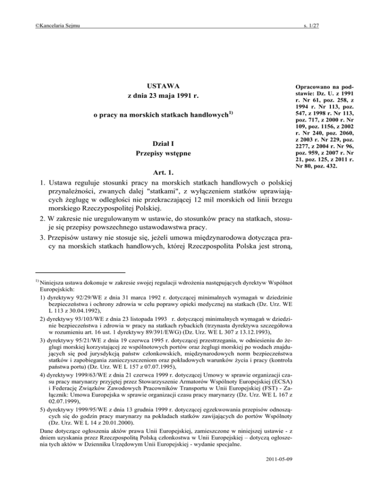 USTAWA z dnia 23 maja 1991 r. o pracy na morskich statkach