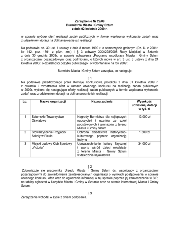 Zarządzenie Nr 29/09 Burmistrza Miasta i Gminy Sztum z dnia 02