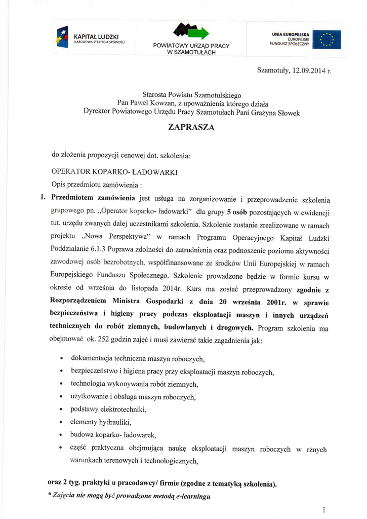 do zloheniapropozyoji cenowej dot. szkolenia: