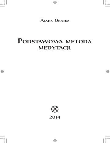 Ajahn Brahm Podstawowa metoda medytacji ☸ 2014 Tytuł oryginału: The Basic Method of Meditation © Dhammaloka © do wydania polskiego Fundacja „Theravada” Wydawca: Fundacja „Theravada” Tłumaczenie: Piotr Jagodziński Redakcja: Aleksandra Łobacz, Beata Wojciechowska-Dudek Skład i łamanie tekstu: Sławomir Szarkowicz Projekt okładki: anatta.pl Zdjęcie na okładce: Karolina Sikorska ISBN 978-83-939377-0-7 Spis treści CZĘŚĆ 1: Utrzymująca się uważność chwili obecnej CZĘŚĆ 2: Cicha uważność chwili obecnej CZĘŚĆ 3: Pełna ciągłości uważność pięknego oddechu O autorze Fundacja „Theravada” 4 9 14 19 20 CZĘŚĆ 1: Utrzymująca się uważność chwili obecnej Medytacja ta ma za zadanie osiągnięcie pięknej ciszy, uspokojenia i przejrzystości w umyśle. Medytacja to droga odpuszczania. W trakcie medytacji odpuszcza się wszelką złożoność zewnętrznego świata, by znaleźć spokój tego, co wewnątrz. We wszelkich rodzajach mistycyzmu, w różnorakich tradycjach duchowych będzie to droga, której celem jest oczyszczony i pełen mocy umysł. Doświadczenie przejrzystości umysłu, który jest wyswobodzony ze świata, to coś niezwykłego i błogiego. Z początku medytacja będzie wymagała nieco ciężkiej pracy, jednak postaraj się znieść te trudy, zdając sobie sprawę z efektów, jakie ona przyniesie w postaci pięknych i znaczących doświadczeń. Warto się postarać. Prawo natury jest takie, że bez wysiłku nie ma postępu. Nieważne, czy jest się mnichem, czy osobą świecką – bez starań do niczego się nie dochodzi, zarówno w medytacji, jak i w czymkolwiek innym. Jednak sam wysiłek nie wystarcza. Należy wykształcić w sobie umiejętny wysiłek. Oznacza to odpowiednie skierowanie energii, jak też utrzymywanie jej na konkretnym zadaniu aż do pomyślnego ukończenia. Zręczny wysiłek nie stanowi przeszkody, nie rozkojarza, gdyż ma za zadanie wytworzyć miły spokój głębokiej medytacji. Należy jasno zdać sobie sprawę z celów medytacji, tak by wiedzieć, gdzie skierować swój wysiłek. Medytacja ta ma za zadanie osiągnięcie pięknej ciszy, uspokojenia i przejrzystości w umyśle. Jeśli zrozumiesz cel, wtedy stanie się jasne, gdzie skierować wysiłek oraz jakie środki należy przedsięwziąć, by tego dokonać. Wysiłek kierowany jest w stronę odpuszczania. Jest to rozwijanie takiego umysłu, który skłonny jest do poniechania. Jednym z nieskomplikowanych, acz znaczących, przesłań Buddhy było to dotyczące medytującego: a mianowicie że każdy, kto ma umysł skłonny do poniechania, łatwo osiąga koncentrację (samādhi). Ktoś taki osiąga niemal automatycznie stany wewnętrznej błogości. Błogosławiony mówi, że podstawową przyczyną stanów pełnych mocy jest świadome porzucenie, odpuszczenie i poniechanie. W trakcie medytacji nie powinniśmy tworzyć w umyśle przywiązania do czegokolwiek. Powinniśmy natomiast rozwijać umysł, który jest skory do odpuszczania sobie, do odkładania ciężaru. Gdy nie medytujemy, ciągle musimy nosić ze sobą ciężar licznych obowiązków – to prawie jak tachanie kilku ciężkich walizek. W trakcie praktyki cały ten bagaż jest zupełnie niepotrzebny. Postaraj się więc dostrzec, ile balastu udało ci się odłożyć dzięki medytacji. Pomyśl o tych sprawach, jak o czymś obarczającym ciebie, czymś uciążliwym, co zaczyna być wręcz przygniatające. Właściwym nastawieniem będzie odłożenie tego wszystkiego, swobodne puszczenie, bez oglądania się za siebie. To właśnie ten rodzaj wysiłku, takie nastawienie, taki rodzaj działania umysłu, skierowany na odpuszczanie, jest tym, co doprowadzić może do głębokich stanów medytacyjnych. Nawet w trakcie początkowej fazy tego rodzaju medytacji sprawdź, czy potrafisz wytworzyć energię poniechania, czyli zamiar odłożenia wszystkiego na bok tak, by krok po kroku mogło dojść do coraz większego odpuszczania. Gdy tylko pozwolisz umysłowi odpuścić wszystkie te sprawy, poczujesz się lżej, doznając swobody i braku obciążenia. Takiego rodzaju 4 porzucanie ciężaru w praktyce medytacji przejawia się fazami, krok po kroku. Możesz oczywiście przejść przez początkowe etapy dość szybko, jednak bądź ostrożny. Czasem gdy zbyt szybko przejdziesz przez fazy wstępne, możesz odczuć pewne braki w pracach przygotowawczych. To tak jak budowanie kamienicy w mieście na mizernych i zrobionych na chybcika fundamentach. Konstrukcja wznosi się bardzo szybko, jednak równie szybko może się zawalić! Mądrzej będzie zatem poświęcić nieco więcej czasu na fundamenty, ale także „na pierwsze piętra”, tworząc silne i stabilne podstawy. Wtedy też, gdy będziesz przechodził na wyższe piętra, czyli błogość medytacyjną, ona także będzie silna i stabilna. Sposób, w jaki uczę medytacji, rozpoczyna się od bardzo prostego zadania: od odłożenia bagażu przeszłości i przyszłości. Możesz pomyśleć, że to jest tak oczywiste, że aż zbyt proste. Włóż w to jednak cały swój wysiłek, nie goniąc przedwcześnie za bardziej zaawansowanymi etapami medytacji, dopóki nie osiągniesz pierwszego celu, jakim jest utrzymywanie uważności na obecnej chwili. Dzięki temu w późniejszych etapach dostrzeżesz, że stworzyłeś silny fundament, na którym możesz budować kolejne poziomy. Pozbywanie się przeszłości oznacza brak jakichkolwiek myśli na temat twojej pracy, twojej rodziny, twoich zobowiązań i odpowiedzialności, twojej historii, dobrych czy złych przeżyć z dzieciństwa etc. Pozostawiasz swoje przeszłe doświadczenia dzięki brakowi jakiegokolwiek nimi zainteresowania. Gdy medytujesz, stajesz się kimś bez przeszłości. Nie zaprzątasz sobie głowy nawet tym, skąd jesteś, gdzie się urodziłeś, kim byli twoi rodzice i jak wyglądało twoje wychowanie. Cała ta historia ma zostać porzucona w trakcie praktyki. W ten sposób każdy na odosobnieniu jest równ