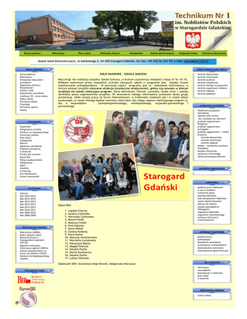 Strona główna Rekrutacja Plan Lekcji Wirtualny Spacer Zastępstwa Szkoły dla Dorosłych Najlepsza Klasa Partnerzy-Sponsorzy Zespół Szkół Ekonomicznych, ul.Sobieskiego 6, 83-200 Starogard Gdański, tel./fax +48 (58) 56 222 49, e-mail: [email protected] Menu Główne Strona główna Rekrutacja Olimpiady maturalne i zawodowe Regionalny Konkurs Recytatorski Krótko o ZSE Kształcenie zawodowe Jubileusz 50 - lecia szkoły Kadra szkoły Promocja szkoły Przetargi Wirtualny spacer Szukaj oferta edukacyjna szkoły KOŁO NAUKOWE - SZKOŁA SUKCESU Mija drugi rok realizacji projektu Szkoła Sukcesu ,w którym uczestniczy młodzież z klasy III Ta i III Td. Efektem końcowym pracy wszystkich uczniów biorących udział w programie jest między innymi zrealizowanie przedsięwzięcia . W pierwszej edycji programu jest to wykonanie Informatora, w którym adresat znajdzie nieznane atrakcje turystyczne miejscowości, gminy czy powiatu w którym znajduje się szkoła realizująca program. Dane techniczne /format ,czcionka, liczba stron / zostały określone przez organizatorów projektu. Po stworzeniu takiego informatora uczniowie danej grupy prezentują efekt swojej pracy na forum internetowym, w środowisku lokalnym jak i w czasie obozu naukowego, w czasie którego będzie tworzony informator dla całego regionu realizującego program tj. dla 4 województw - zachodniopomorskiego, wielkopolskiego, kujawsko-pomorskiego i pomorskiego. technik technik technik technik technik technik technik technik ekonomista informatyk analityk handlowiec obsługi turystycznej organizacji reklamy logistyk spedytor programy i projekty Wybieram przyszłość zawodową szkolne koło caritas "der schlüssel zur karriere" praktyki zagraniczne hiszpania praktyki zagraniczne portugalia praktyki zagraniczne - wielka brytania technik ekonomista technik informatyk technik logistyk polsko - niemiecka wymiana młodzieży projekt etwinning zachowaj równowagę szkoła promująca zdrowie Uczniowie Stypendia Osiągnięcia uczniów Konkurs na najlepszą klasę Samorząd szkolny Plan lekcji Zastępstwa Matura Egzaminy zawodowe Praktyki zawodowe E-dziennik Poczta dla uczniów Kanał RSS Wykaz podręczników Wydarzenia Sport Gazetka E-learning Gry edukacyjne Strony nauczycieli projekty zakończone biblioteka Archiwum Galeria Rok 2015/2016 Rok 2014/2015 Rok 2013/2014 Rok 2012/2013 Rok 2011/2012 Rok 2010/2011 Rok 2009/2010 Rok 2008/2009 Najczęściej czytane Rekrutacja (38406) Kadra Zespołu Szkół Ekonomicznych w Starogardzie Gdańskim (24132) Egzamin maturalny informacje ogólne (20016) Zestaw podręczników na nowy rok szkolny (12625) Konkurs Na Najlepszą Klasę (10459) Skład SKN: 1. Jagoda Chociaj 2. Sandra Cieślińska 3. Weronika Cylkowska 4. Dawid Felski 5. Mateusz Felski 6. Ewa Gdaniec 7. Anna Hakiel 8. Żaneta Kolberg 9. Karol Kosior 10. Martyna Kwaśniewska 11. Weronika Landowska 12. Katarzyna Mania 13. Magda Potocka 14. Natalia Pazda 15. Marta Stachowicz 16. Natalia Stoffa 17. Łukasz Wacholc Opiekunki SKN: Stanisława Głąb-Brandt, Małgorzata Maruszak Przydatne Linki godziny pracy biblioteki o nas w mediach uczniowie piszą katalog biblioteki koło sympatyków biblioteki nasze zainteresowania lektury do matury zasady sporządzania bibliografii. regulamin biblioteki regulamin internetowego centrum informacji multimedialnej pedagog i psycholog godziny pracy profilaktyka doradztwo zawodowe prezentacje multimedialne dostosowania maturalne dostosowania egzaminacyjne dla rodziców rekrutacja wywiadówki konsultacje z rodzicami plan zajęć e-dziennik dokumenty szkolne statut szkoły liczba odwiedzin odwiedziło nas: 2678029 imieniny Beaty, Juliana, Wincentego Do końca roku szkolnego pozostało 106 dni. przydatne linki europejski fundusz społeczny Gotycki kościół świętego Mateusza w Starogardzie Gdańskim Saint Matthews Gothic Chuch in Starogard Autor: Karol Kosior Budowa kościoła została rozpoczęta po osiedleniu się na lewym brzegu Wierzycy rycerzy zakonu. Obwarowali oni osadę i wzniesienia w obrębie murów obronnych gotyckiej świątyni. Prace te trwały najprawdopodobniej od 1309 roku i w ich efekcie powstała najstarsza część kościoła. Budowę ukończono około1350roku. Warunki terenowe nie pozwoliły na wzniesienie typowej dla kościołów gotyckich wierzy, dlatego wielkie dzwony kościelne umieszczone są osobno w stojących przy kościele dzwonnicach. Charakterystyczne cechy to zastosowane łuki przyporowe, sklepienia krzyżowo-żebrowe, witraże Saint Matthews church in Starogard Gdanski The rection of the church started after the Teutonic Knights had settled on the left bank of the Wierzyca River. They surrounded the settlement and the slopes within the gothic temple embattled walls. It is likely that the works started in 1309, and as a result, the oldest part of the church was founded. The work was finished around 1350. The terrain conditions did not allow to erect a typical tower for the gothic churches, therefore, the big church bells are put separately, in the bell towers standing next to church. Its characteristic features include: straining arches, cross-ribbed vaults and stained glass. Baszta Gdańska w Starogardzie Gdańskim Gdansk Bastille in Starogard Autor: Martyna Kwaśniewska Baszta Gdańska powstała około 1325 roku. Jest to najlepiej zachowany obiekt gotyckiej architektury obronnej miasta. Znajduje się nad kanałem Wierzycy – dawniej fosy. Historycznie baszta służyła do obrony i strzegła bezpieczeństwa wjazdu do miasta. Z czasem jej funkcja zmieniła się na obserwacyjno-obronną. W późniejszych latach znajdowało się w niej więzienie. Gdansk Bastille in Starogard Gdanski Gdansk Bastille was erected around 1325. It is the best preserved object in the town gothic defensive architecture. It is located on the Wierzyca channel – a moat in the past. Its aim was to defend and guard a safe entrance to town. With the time its function was changed to a watch and defend role. Lat